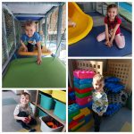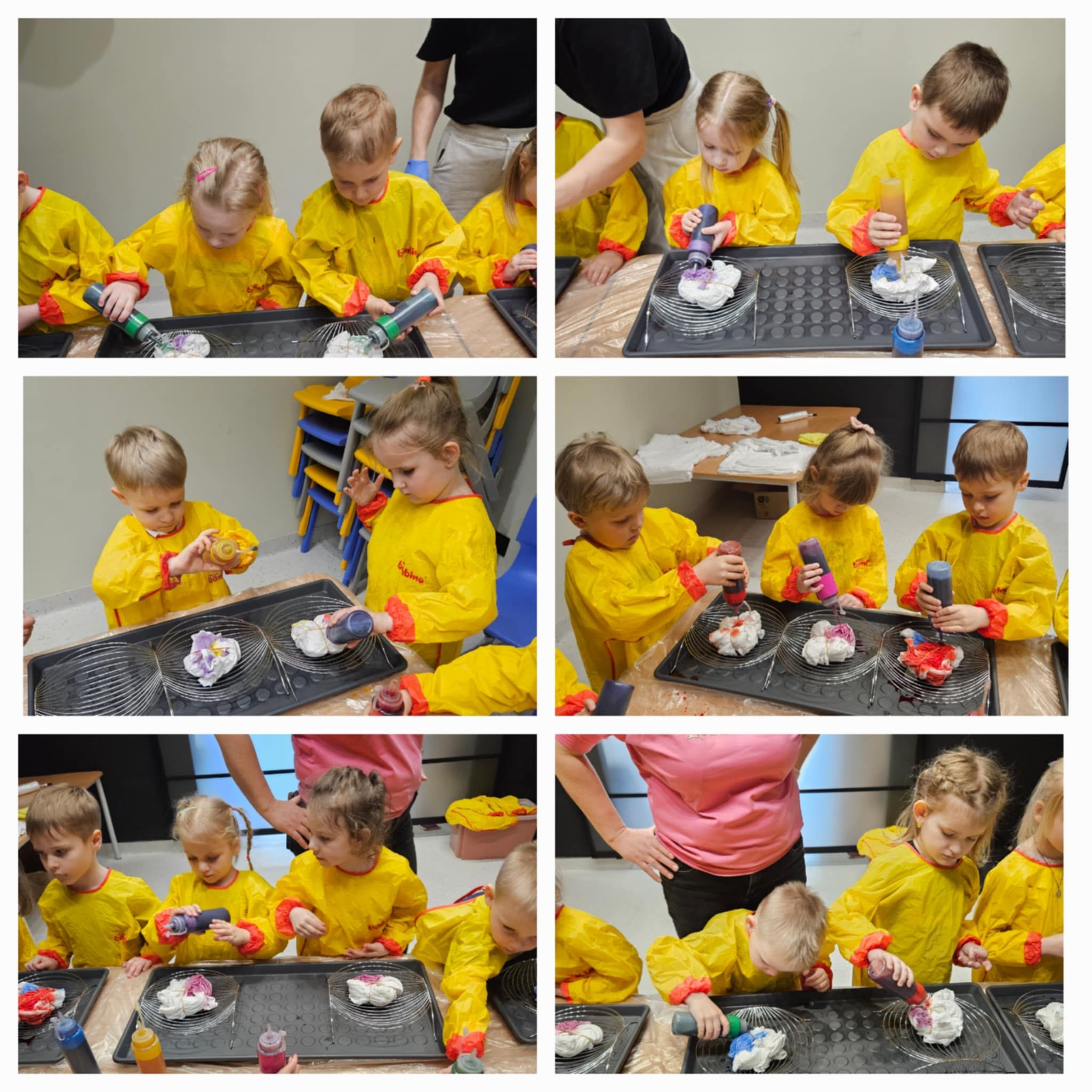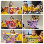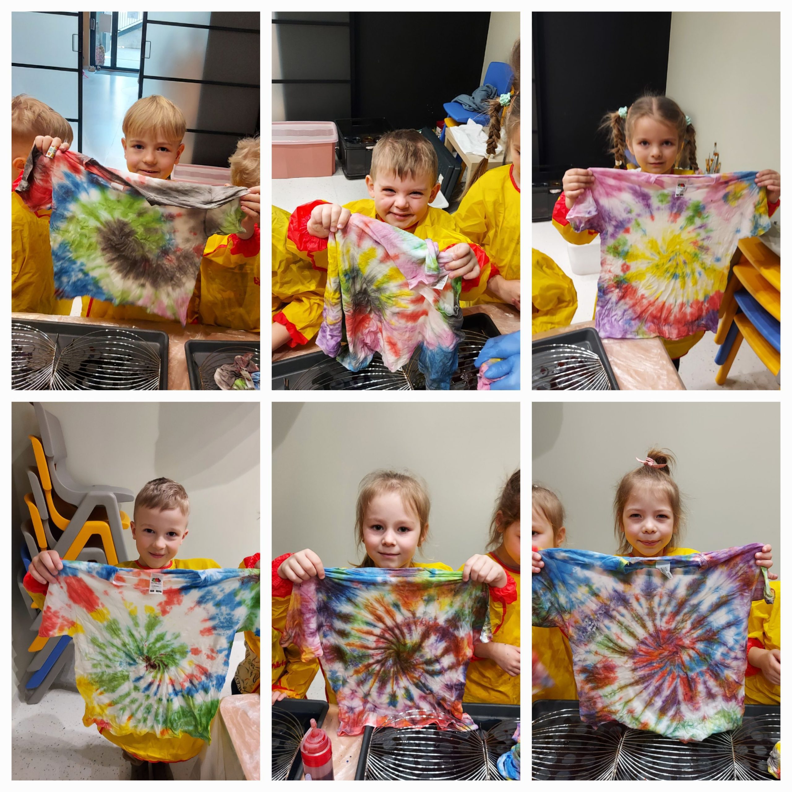 Dnia 28.03.2025r. grupa Sówki i grupa Pszczółki udali się na wycieczkę do sali zabaw Hocki Klocki w Kartuzach. Na miejscu każda z grup uczestniczyła w warsztatach pt: Farbowanie koszulek – niesamowite zajęcia, na których dzieci uczą się farbować koszulki metodą DIY. Po warsztatach cała zabaw należała do nas. Radości i śmiechów nie było końca. Był to mile spędzony czas.