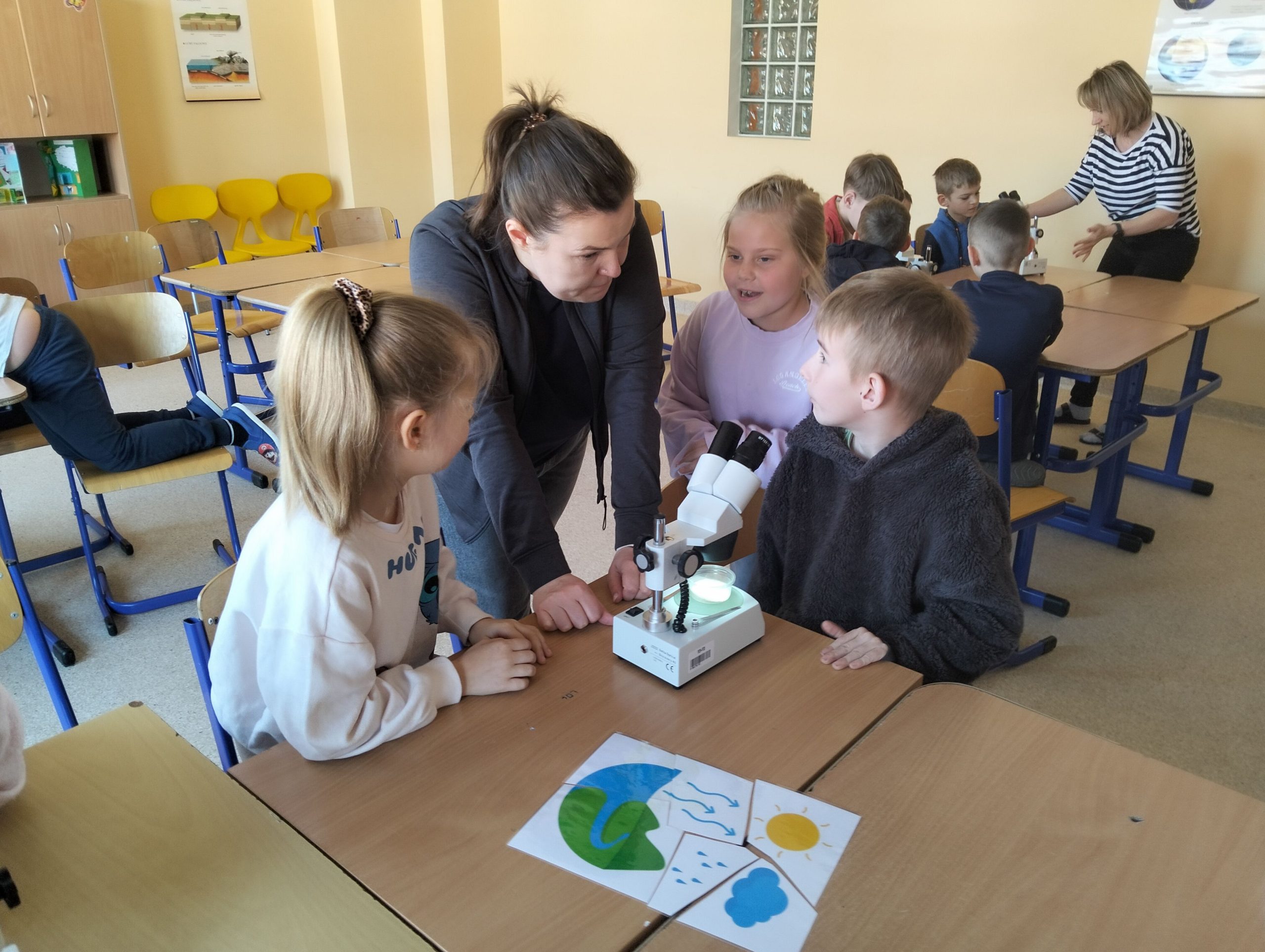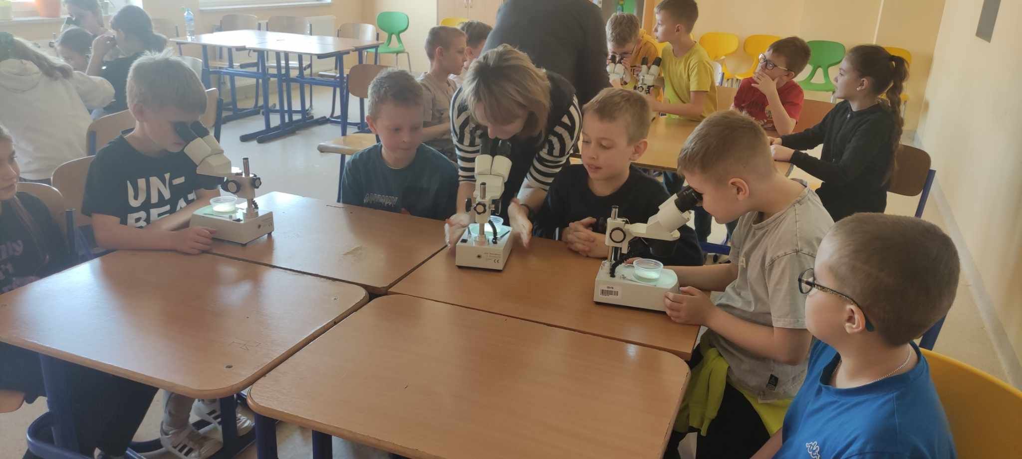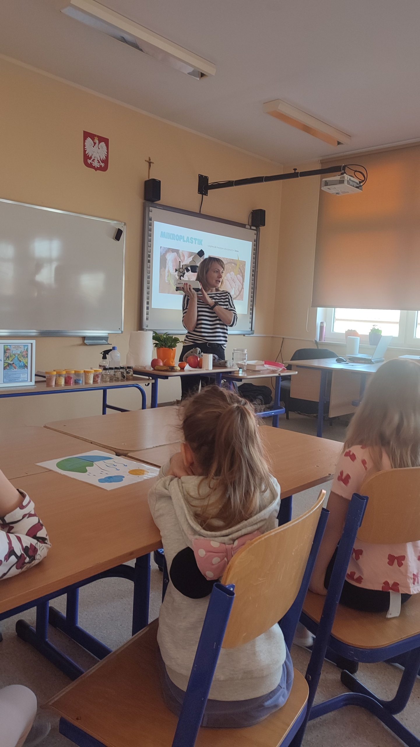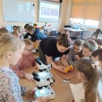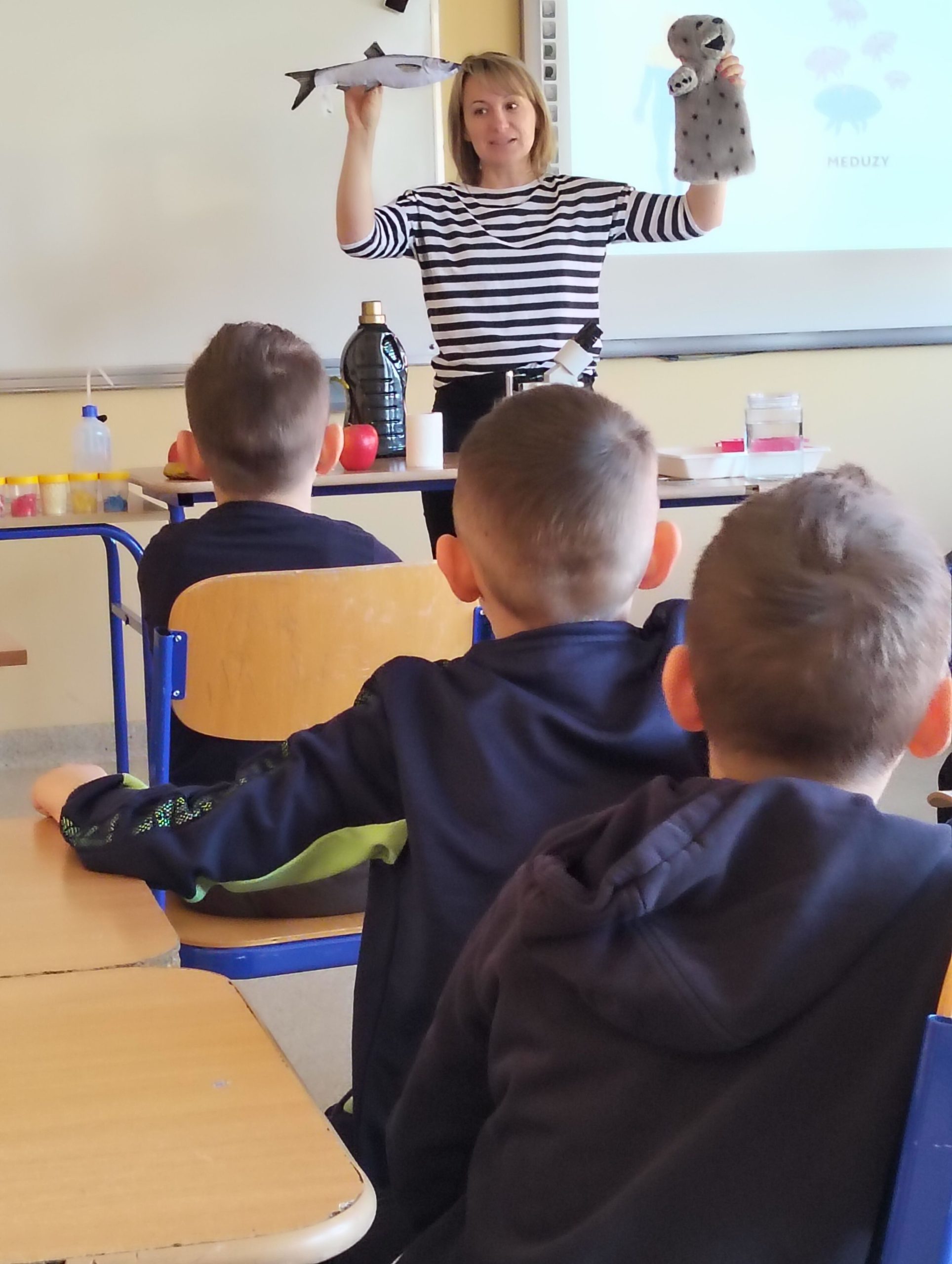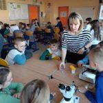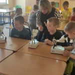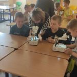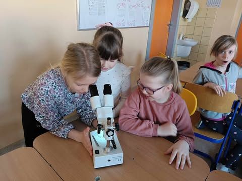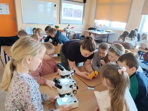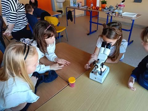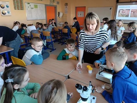 Dnia 10 marca 2025 r. uczniowie klas 1-3 naszej szkoły wzięli udział w warsztatach ekologicznych Na tropie zanieczyszczeń wody, prowadzonych przez trenerki z Centrum Edukacji, które funkcjonuje przy Akwarium Gdyńskim. Zajęcia zostały zrealizowane z dofinansowania Wojewódzkiego Fundusz Ochrony Środowiska i Gospodarki Wodnej w Gdańsku w ramach Programu Regionalnego Wsparcia Edukacji Ekologicznej. Warsztaty miały na celu podniesienie świadomości ekologicznej uczniów poprzez przybliżenie zagadnień związanych z zasobami wodnymi, ich rolą, koniecznością ochrony oraz zagrożeniami wynikającymi z niewłaściwej gospodarki ściekowej. Uczniowie poprzez ciekawą prezentację bogatą w różnorodne ilustracje zapoznali się z obiegiem wody w przyrodzie. Dzięki wykorzystaniu nowoczesnego sprzętu laboratoryjnego- mikroskopów wraz z osprzętem oraz odpowiednich preparatów dzieci mogły dokładnie zobaczyć zanieczyszczenie wody oraz zapoznać się z problemem mikroplastiku. Na zakończenie zajęć uczniowie otrzymali drobne nagrody o tematyce ekologicznej, które będą motywacją do ochrony środowiska. Bardzo cieszymy się z tego, że mogliśmy wziąć udział w takich warsztatach. Zdobyta wiedza z pewnością wpłynie na podniesienie świadomości ekologicznej naszych dzieci oraz przyczyni się do uwrażliwienia na potrzebę ochrony zasobów wodnych.