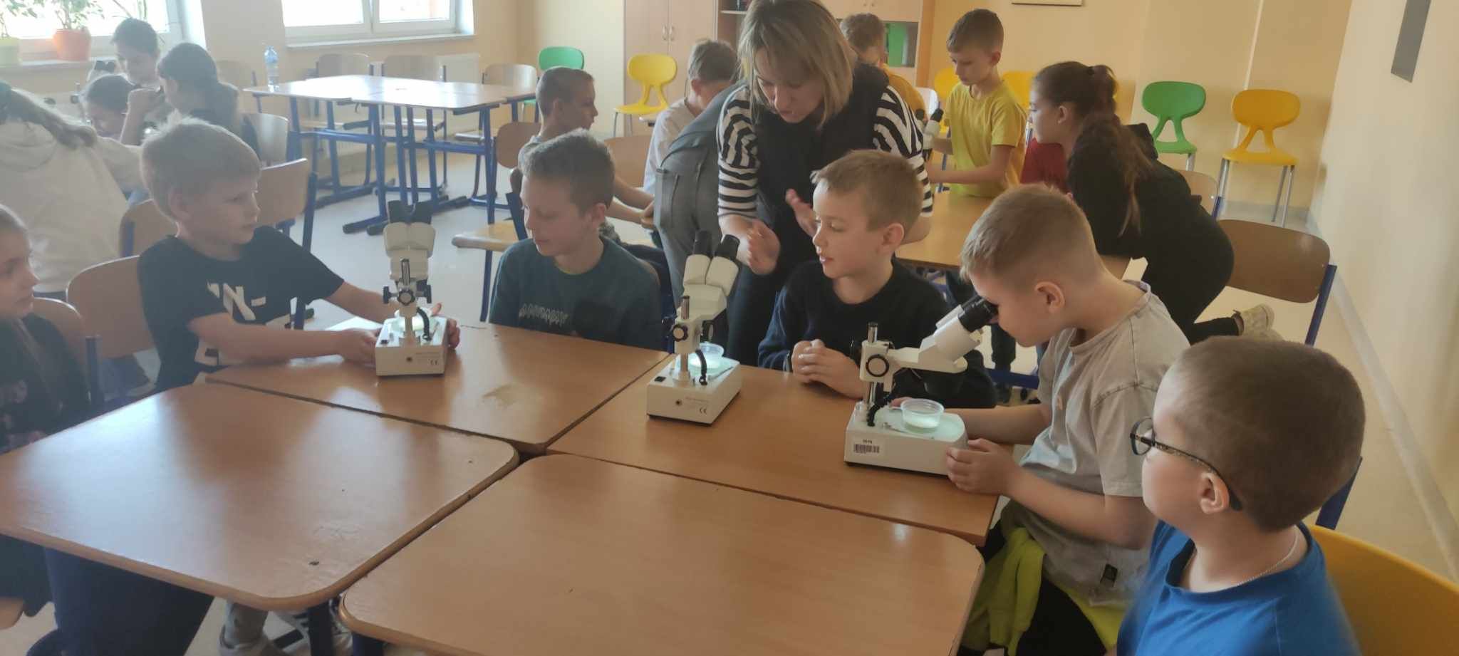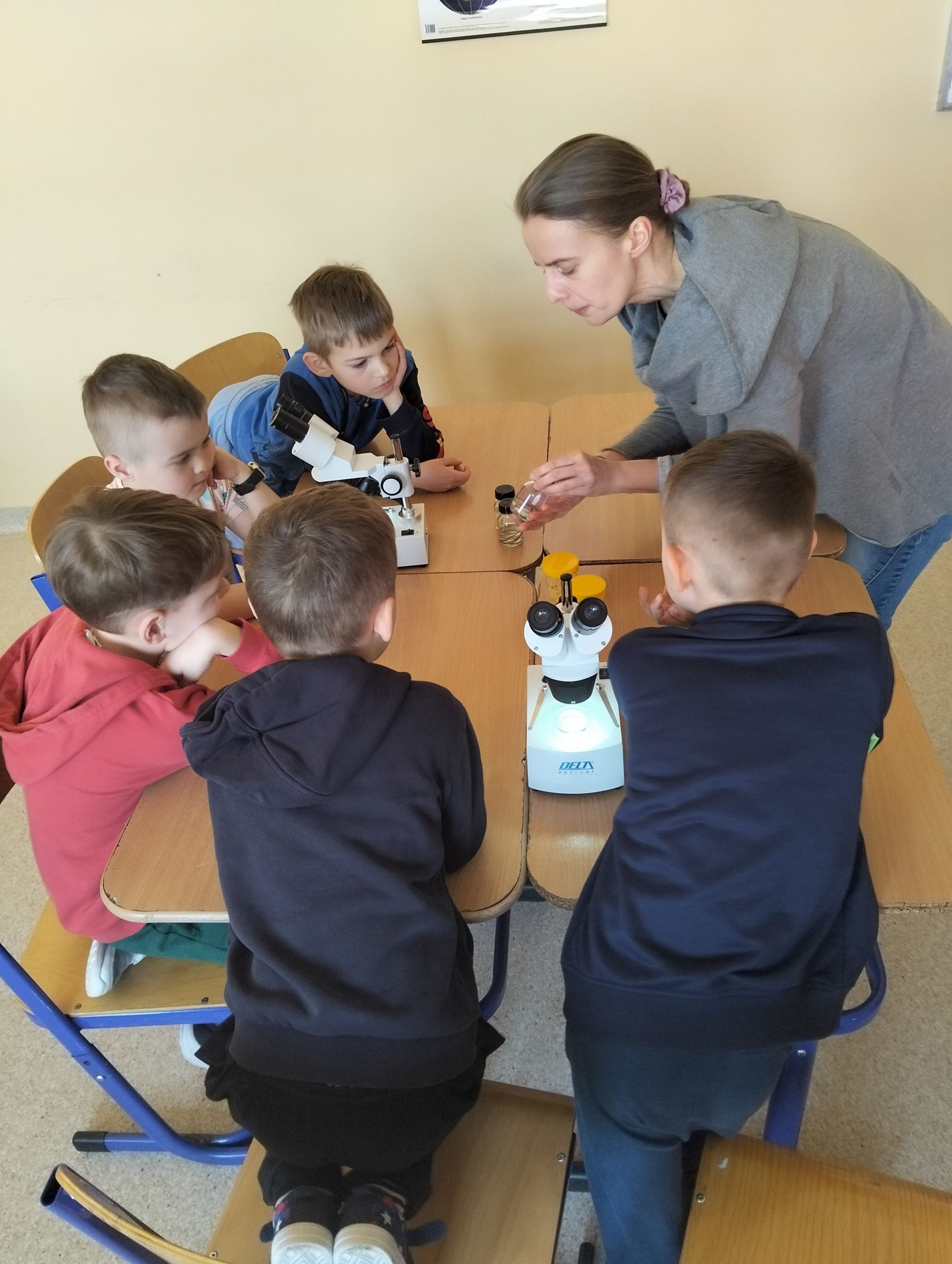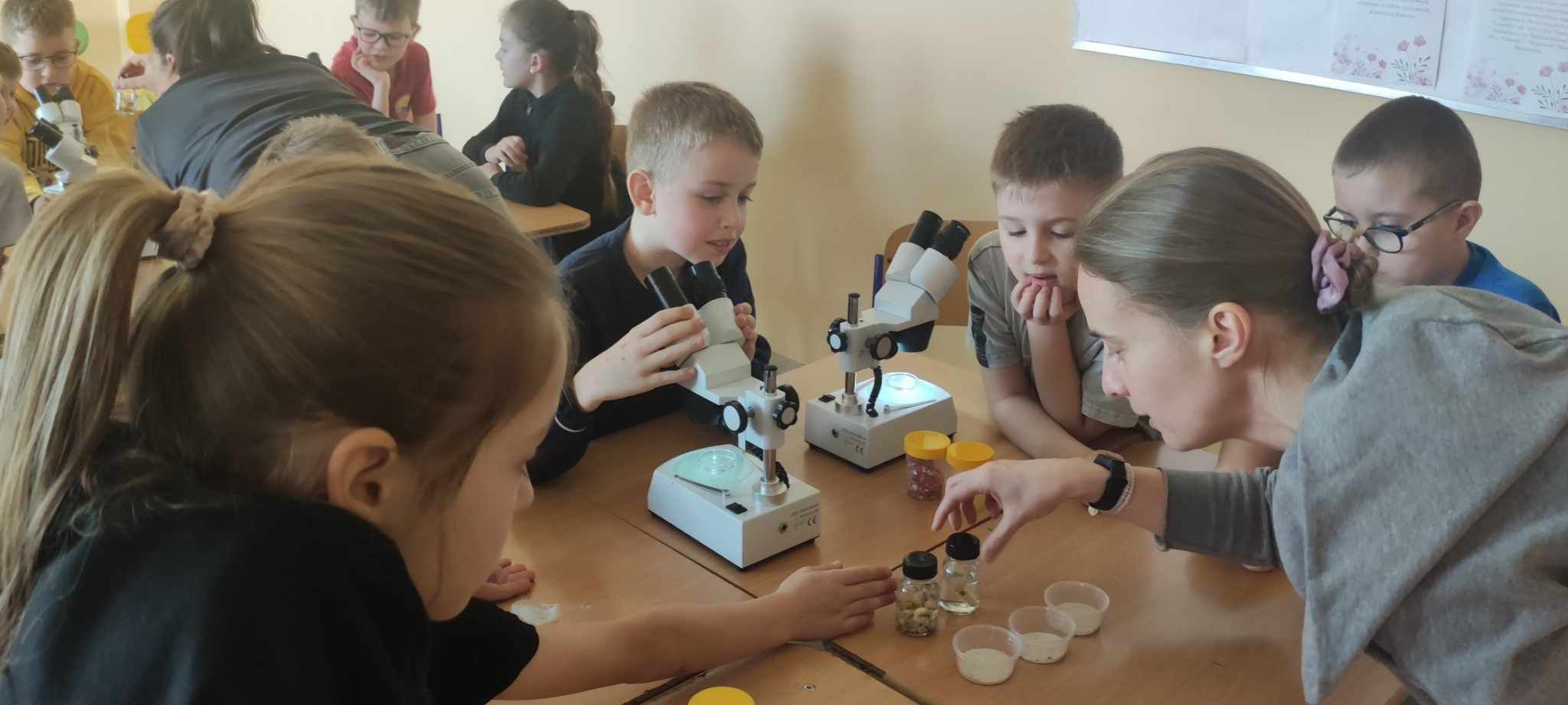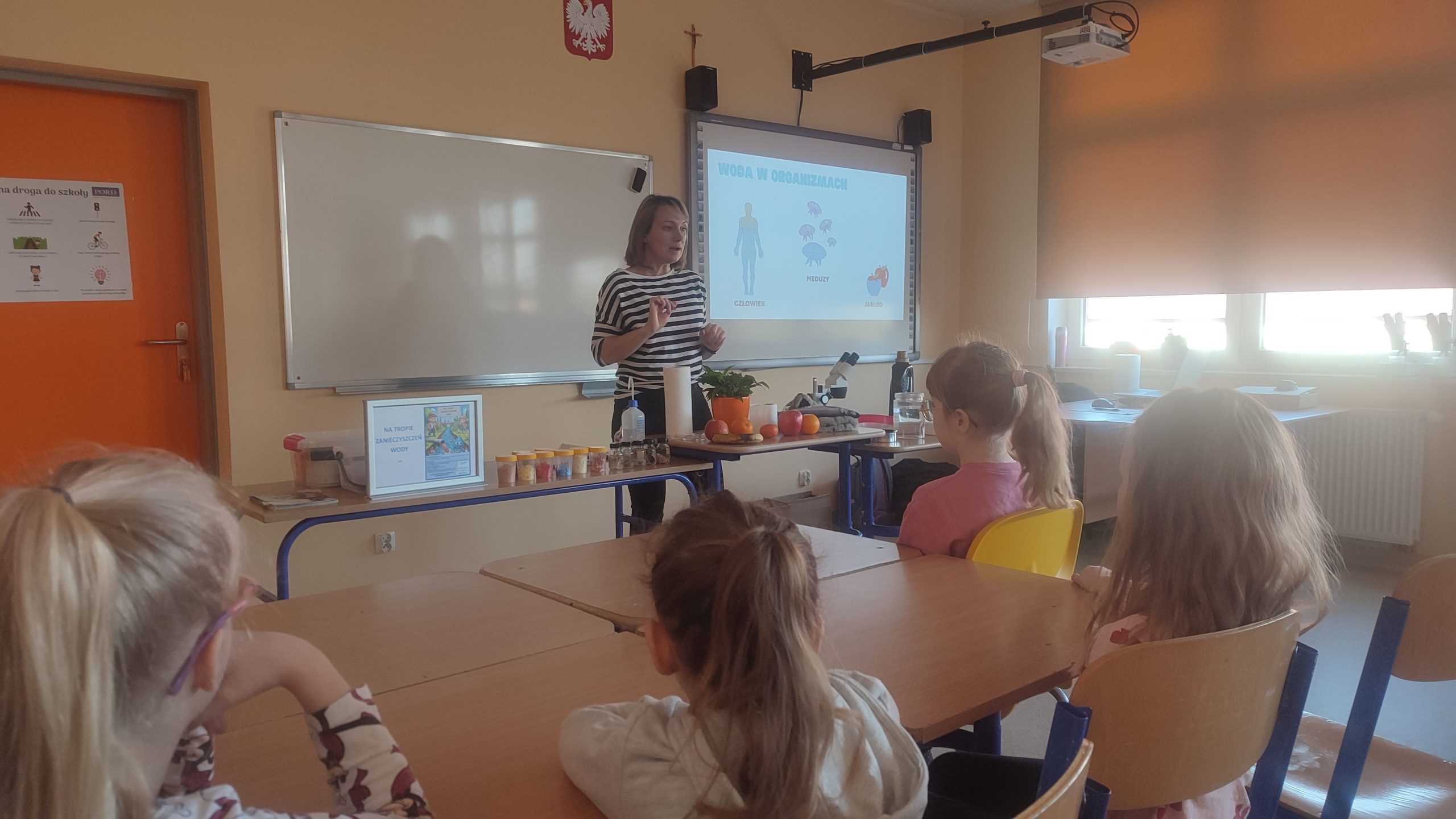 Dnia 10 marca 2025 r. uczniowie klas 1-3 naszej szkoły wzięli udział w warsztatach ekologicznych Na tropie zanieczyszczeń wody, prowadzonych przez trenerki z Centrum Edukacji, które funkcjonuje przy Akwarium Gdyńskim. Zajęcia zostały zrealizowane z dofinansowania Wojewódzkiego Fundusz Ochrony Środowiska i Gospodarki Wodnej w Gdańsku w ramach Programu Regionalnego Wsparcia Edukacji Ekologicznej. Warsztaty miały na celu podniesienie świadomości ekologicznej uczniów poprzez przybliżenie zagadnień związanych z zasobami wodnymi, ich rolą, koniecznością ochrony oraz zagrożeniami wynikającymi z niewłaściwej gospodarki ściekowej. Uczniowie poprzez ciekawą prezentację bogatą w różnorodne ilustracje zapoznali się z obiegiem wody w przyrodzie. Dzięki wykorzystaniu nowoczesnego sprzętu laboratoryjnego- mikroskopów wraz z osprzętem oraz odpowiednich preparatów dzieci mogły dokładnie zobaczyć zanieczyszczenie wody oraz zapoznać się z problemem mikroplastiku. Na zakończenie zajęć uczniowie otrzymali drobne nagrody o tematyce ekologicznej, które będą motywacją do ochrony środowiska. Bardzo cieszymy się z tego, że mogliśmy wziąć udział w takich warsztatach. Zdobyta wiedza z pewnością wpłynie na podniesienie świadomości ekologicznej naszych dzieci oraz przyczyni się do uwrażliwienia na potrzebę ochrony zasobów wodnych.