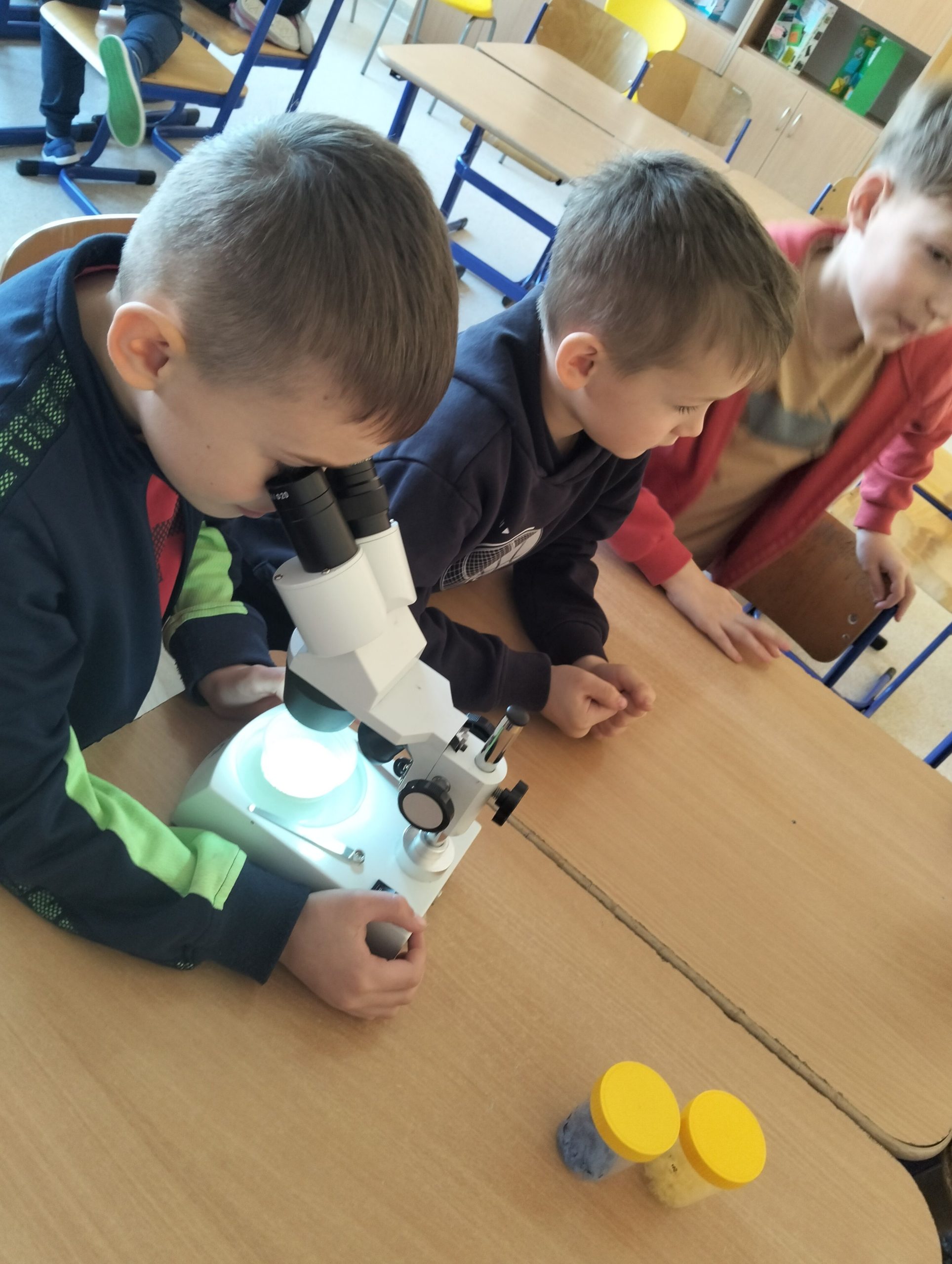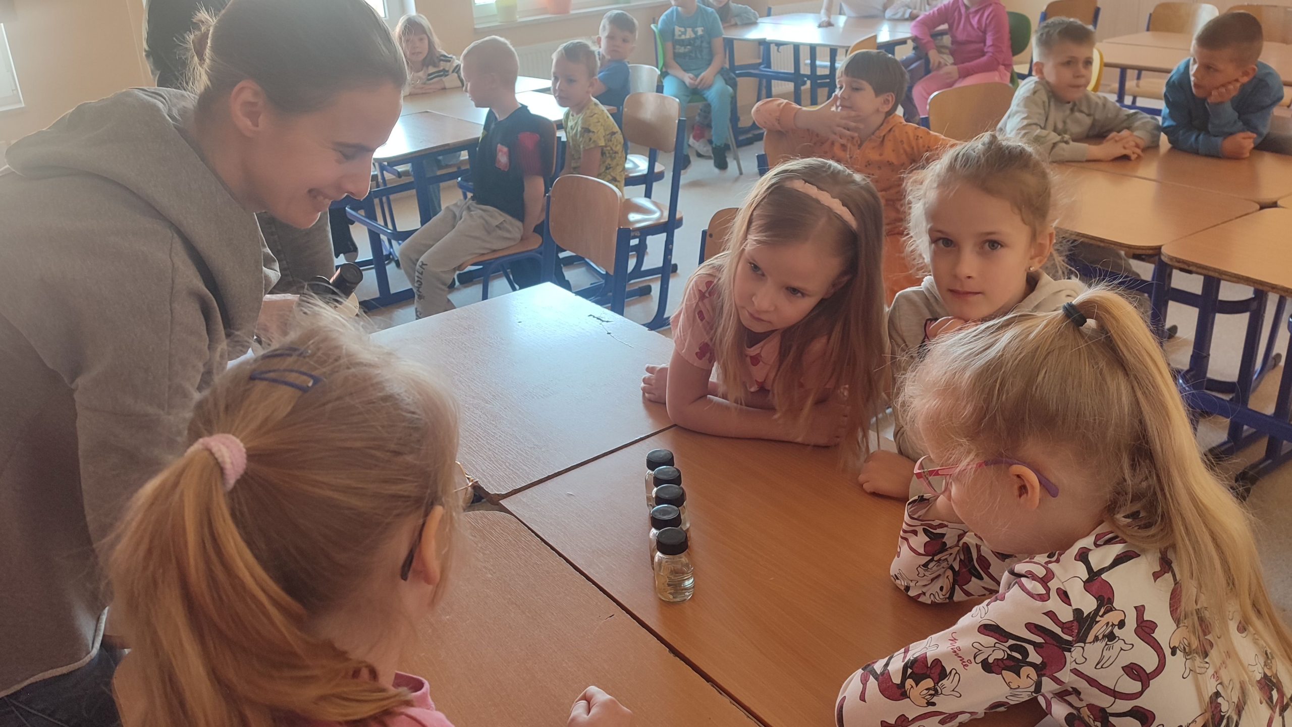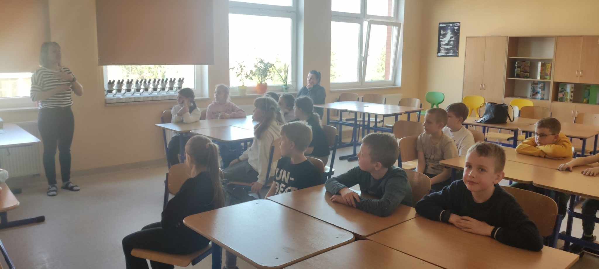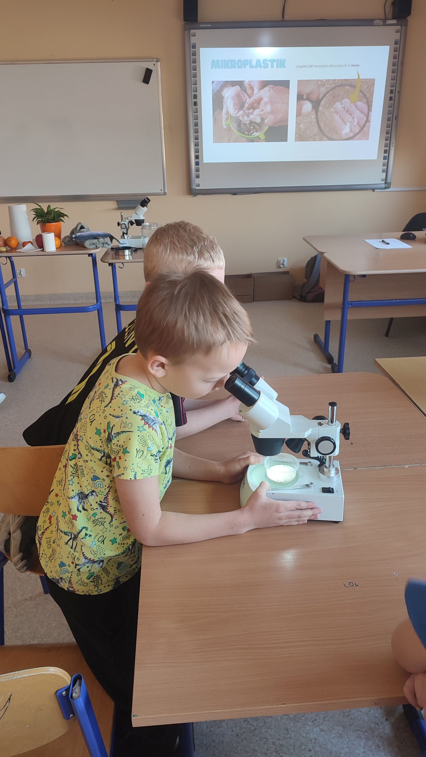 Dnia 10 marca 2025 r. uczniowie klas 1-3 naszej szkoły wzięli udział w warsztatach ekologicznych Na tropie zanieczyszczeń wody, prowadzonych przez trenerki z Centrum Edukacji, które funkcjonuje przy Akwarium Gdyńskim. Zajęcia zostały zrealizowane z dofinansowania Wojewódzkiego Fundusz Ochrony Środowiska i Gospodarki Wodnej w Gdańsku w ramach Programu Regionalnego Wsparcia Edukacji Ekologicznej. Warsztaty miały na celu podniesienie świadomości ekologicznej uczniów poprzez przybliżenie zagadnień związanych z zasobami wodnymi, ich rolą, koniecznością ochrony oraz zagrożeniami wynikającymi z niewłaściwej gospodarki ściekowej. Uczniowie poprzez ciekawą prezentację bogatą w różnorodne ilustracje zapoznali się z obiegiem wody w przyrodzie. Dzięki wykorzystaniu nowoczesnego sprzętu laboratoryjnego- mikroskopów wraz z osprzętem oraz odpowiednich preparatów dzieci mogły dokładnie zobaczyć zanieczyszczenie wody oraz zapoznać się z problemem mikroplastiku. Na zakończenie zajęć uczniowie otrzymali drobne nagrody o tematyce ekologicznej, które będą motywacją do ochrony środowiska. Bardzo cieszymy się z tego, że mogliśmy wziąć udział w takich warsztatach. Zdobyta wiedza z pewnością wpłynie na podniesienie świadomości ekologicznej naszych dzieci oraz przyczyni się do uwrażliwienia na potrzebę ochrony zasobów wodnych.