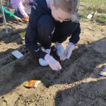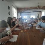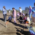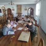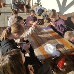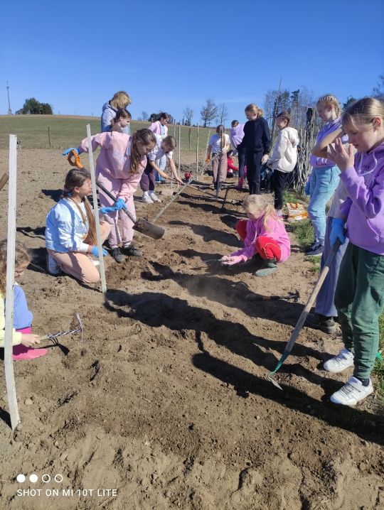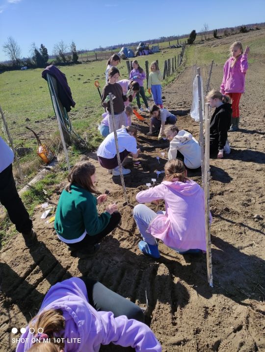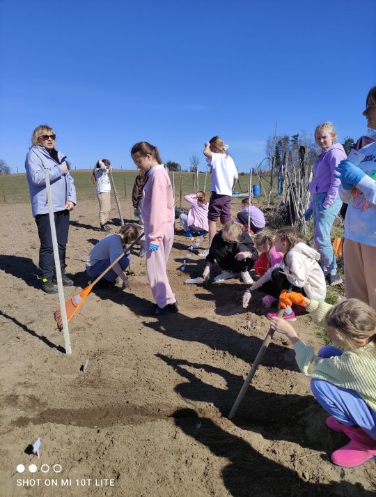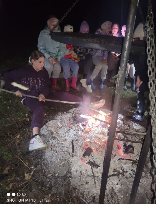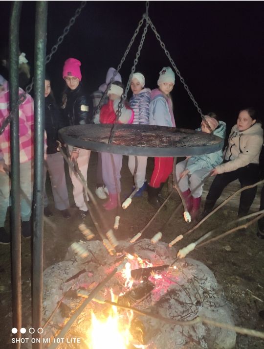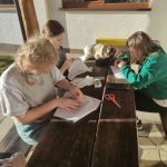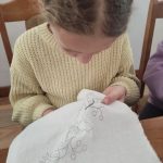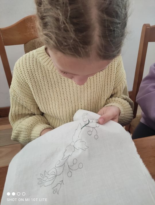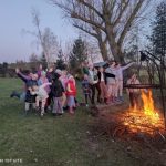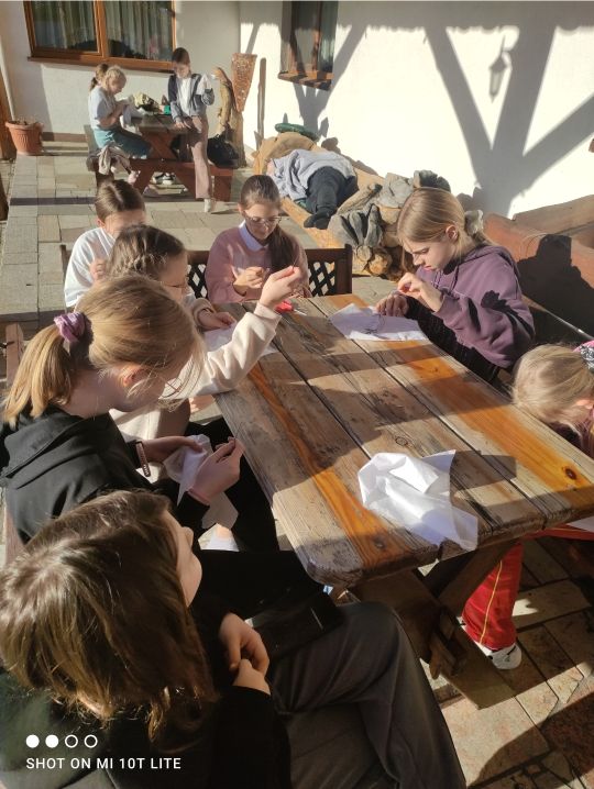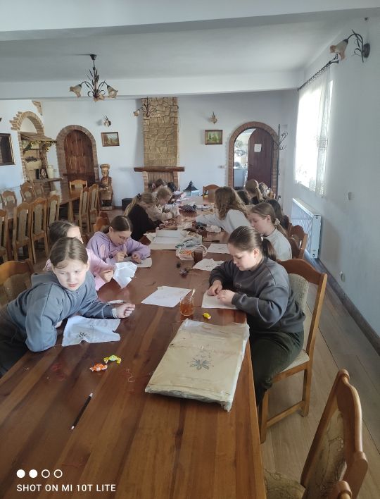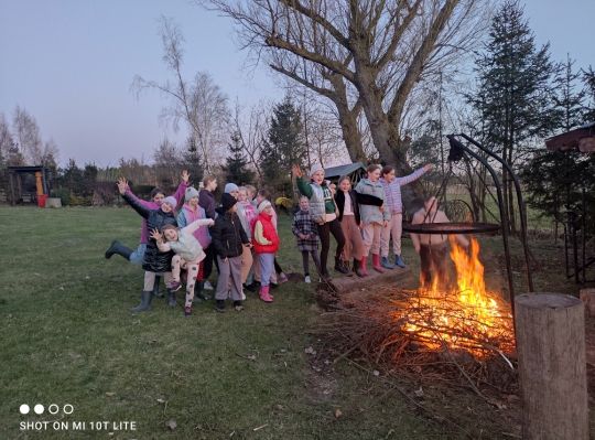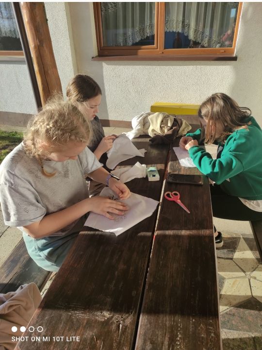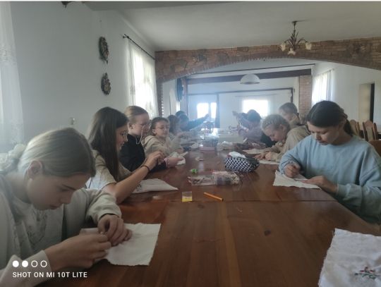 3 i 4 kwietnia 2025r., dziewczynki z klas 4-5, uczęszczające na język kaszubski, pojechały na wycieczkę do Sylczna. Nasi uczniowie od lat odwiedzają to miejsce, ponieważ goszczący nas gospodarze umożliwiają dzieciom założenie ogrodu, penetrowanie po całym zabudowaniu gospodarstwa oraz nie przeszkadzają im hałasy bawiących się dzieci. W tym roku, oprócz prac ogrodowych, dziewczynki uczestniczyły w warsztatach hafciarskich. Większość pierwszy raz kalkowała wzory na płótnie oraz próbowała wyszywać wzory. Okazało się, że mimo trudności z nawleczeniem nici haftowanie nie sprawiło większych problemów i każda z dziewcząt wyhaftowała samodzielnie większość wzoru. Podczas pobytu u państwa Błaszkowskich mile spędziłyśmy czas przy ognisku, na wspólnych zabawach podwórkowych oraz nocnych podchodach. Była też okazja do długich rozmów do samego rana. Szkoda było spać, gdy było się w takiej wspaniałej grupie. Był to bardzo miły wyjazd.