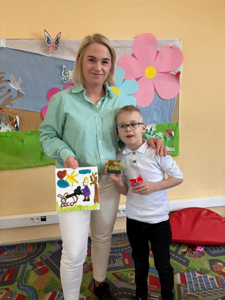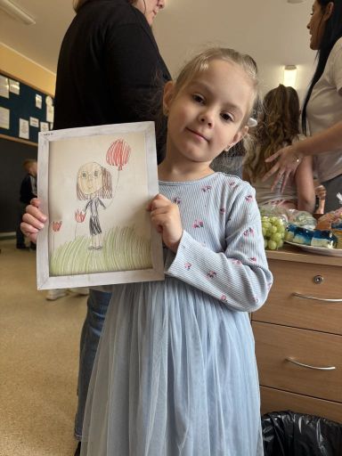 Nie zabrakło również emocjonującego quizu Jak dobrze znam swoją mamę?, w którym dzieci odpowiadały na pytania dotyczące swoich mam – śmiechu i radości było przy tym co niemiara! Kolejnym punktem programu było malowanie portretów mam – dzieci z wielkim zaangażowaniem oddawały na papierze to, co kochają w swoich mamach najbardziej.