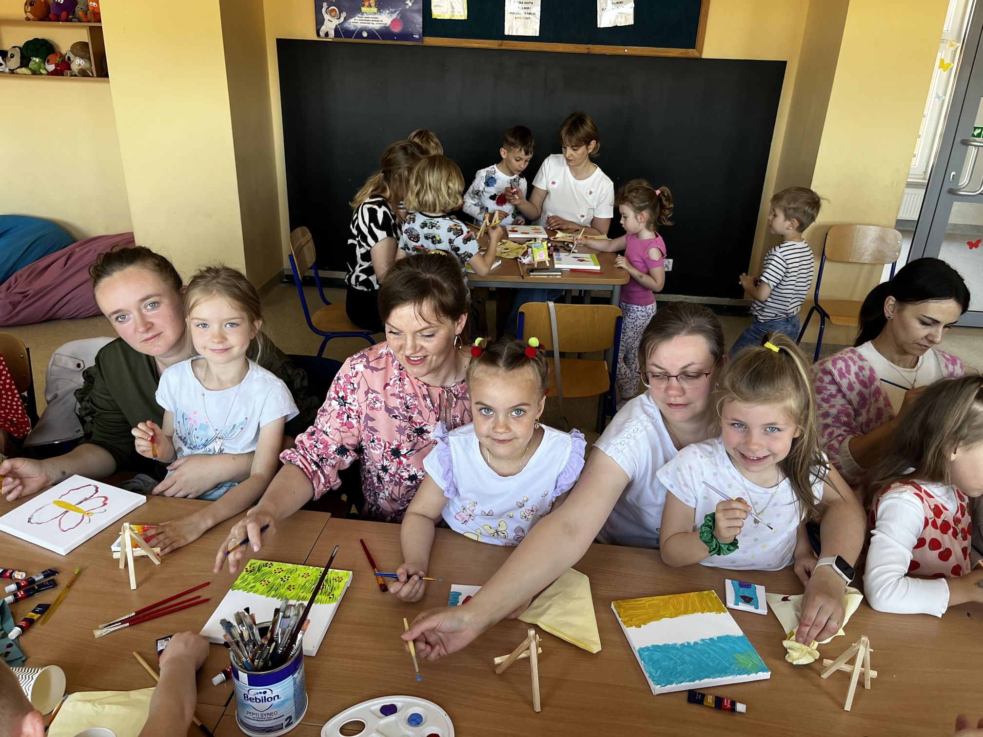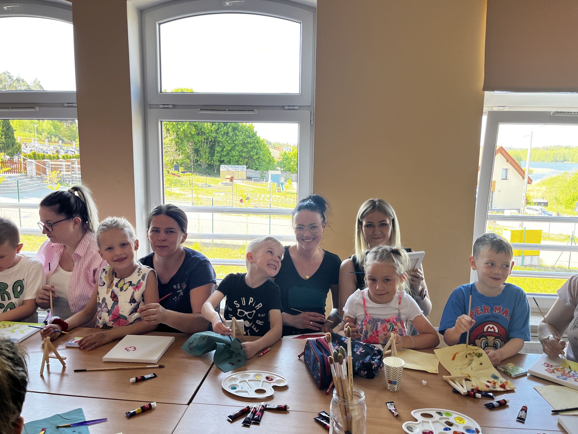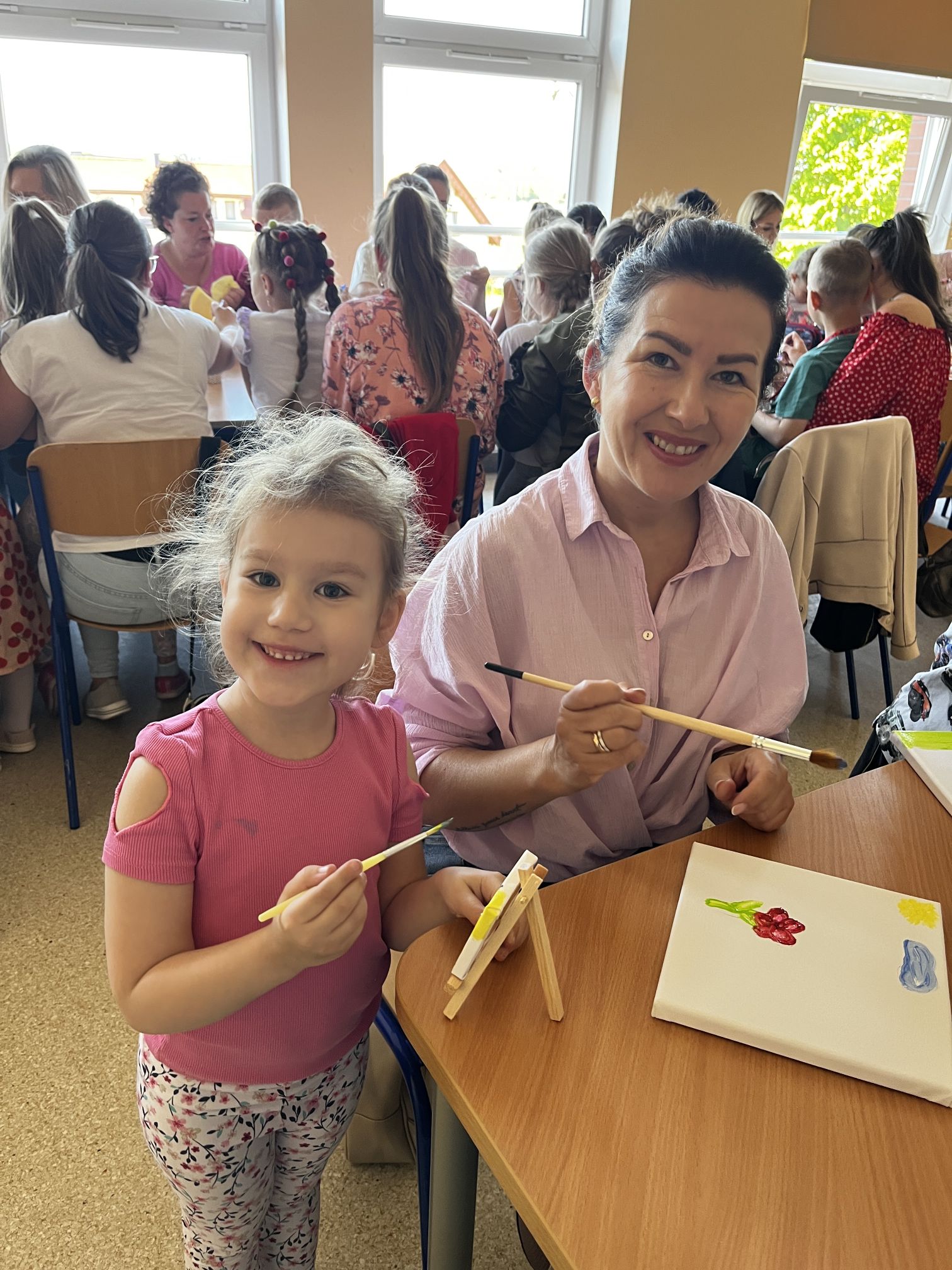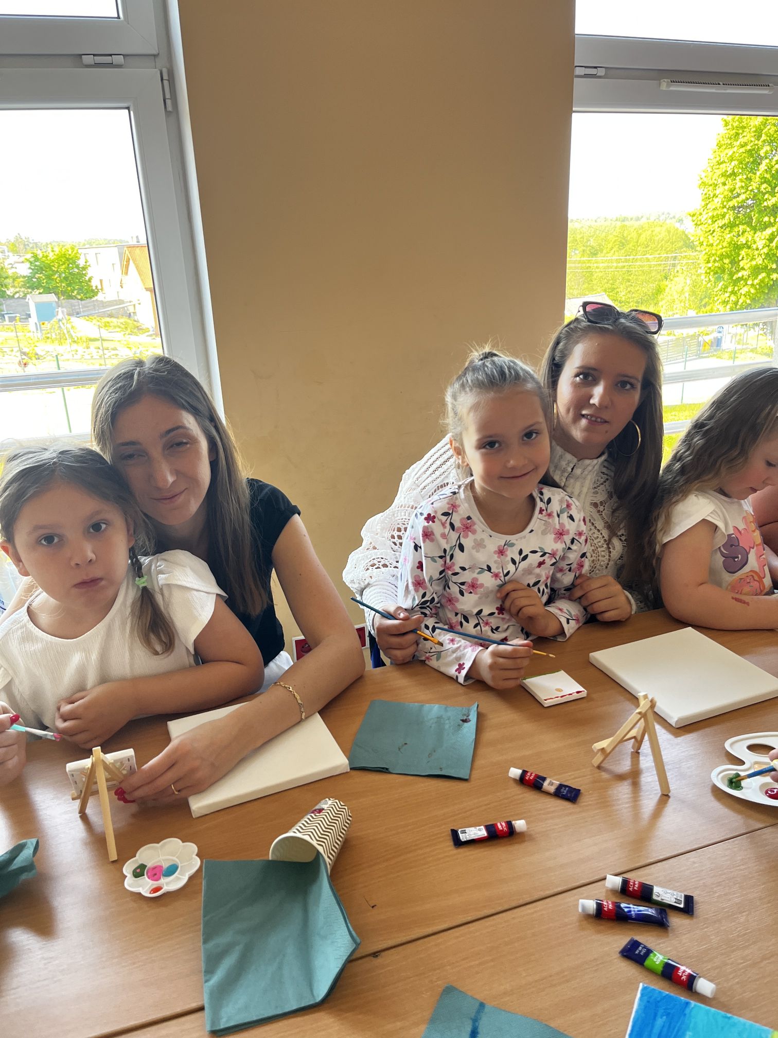 Podczas spotkań dzieci wspólnie z mamami malowały obrazy na prawdziwych płótnach, tworząc niepowtarzalne dzieła sztuki, które z pewnością będą wyjątkową pamiątką tych wspólnie spędzonych chwil.