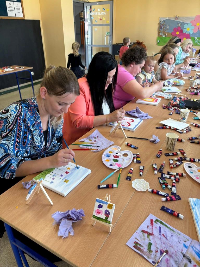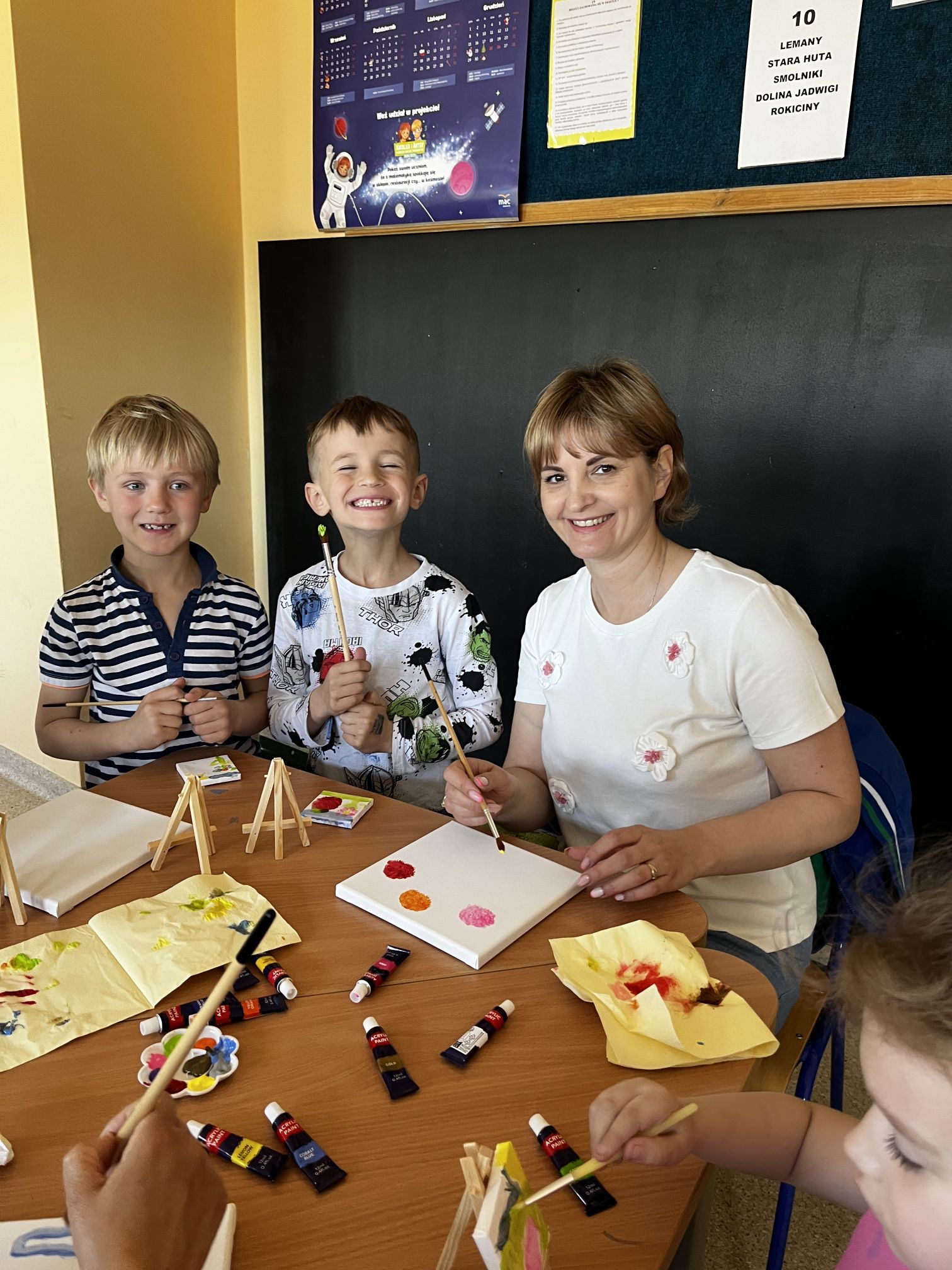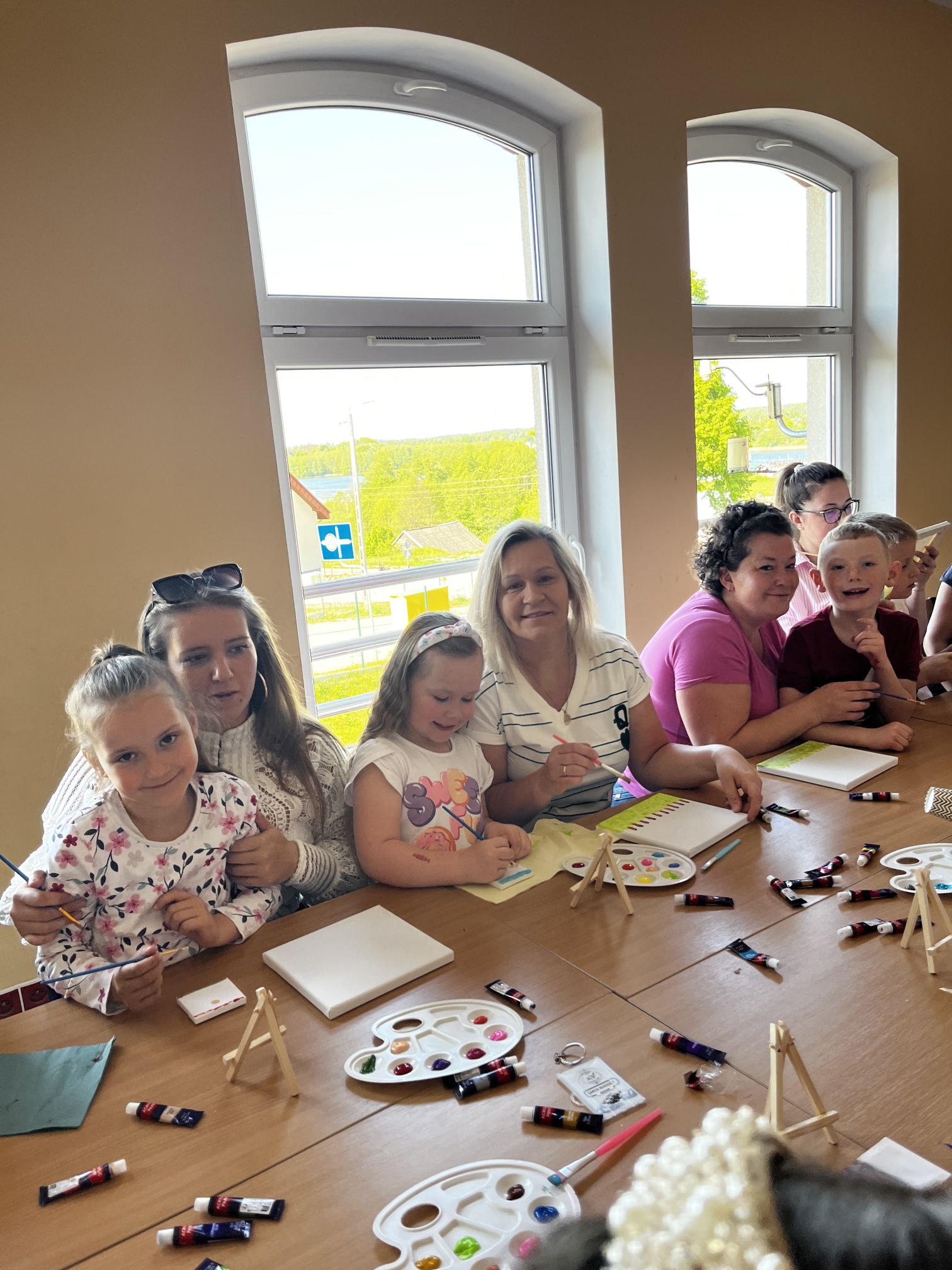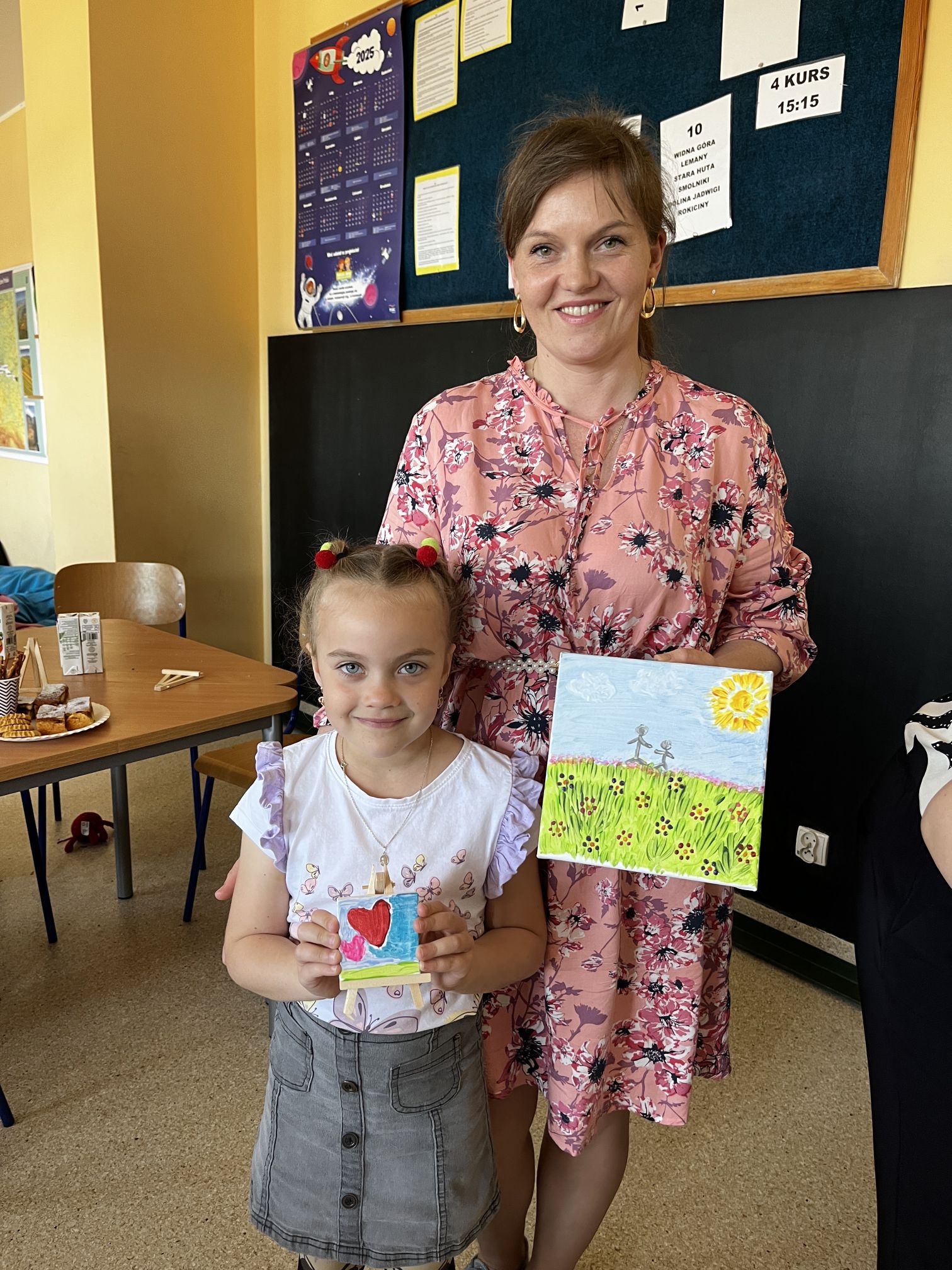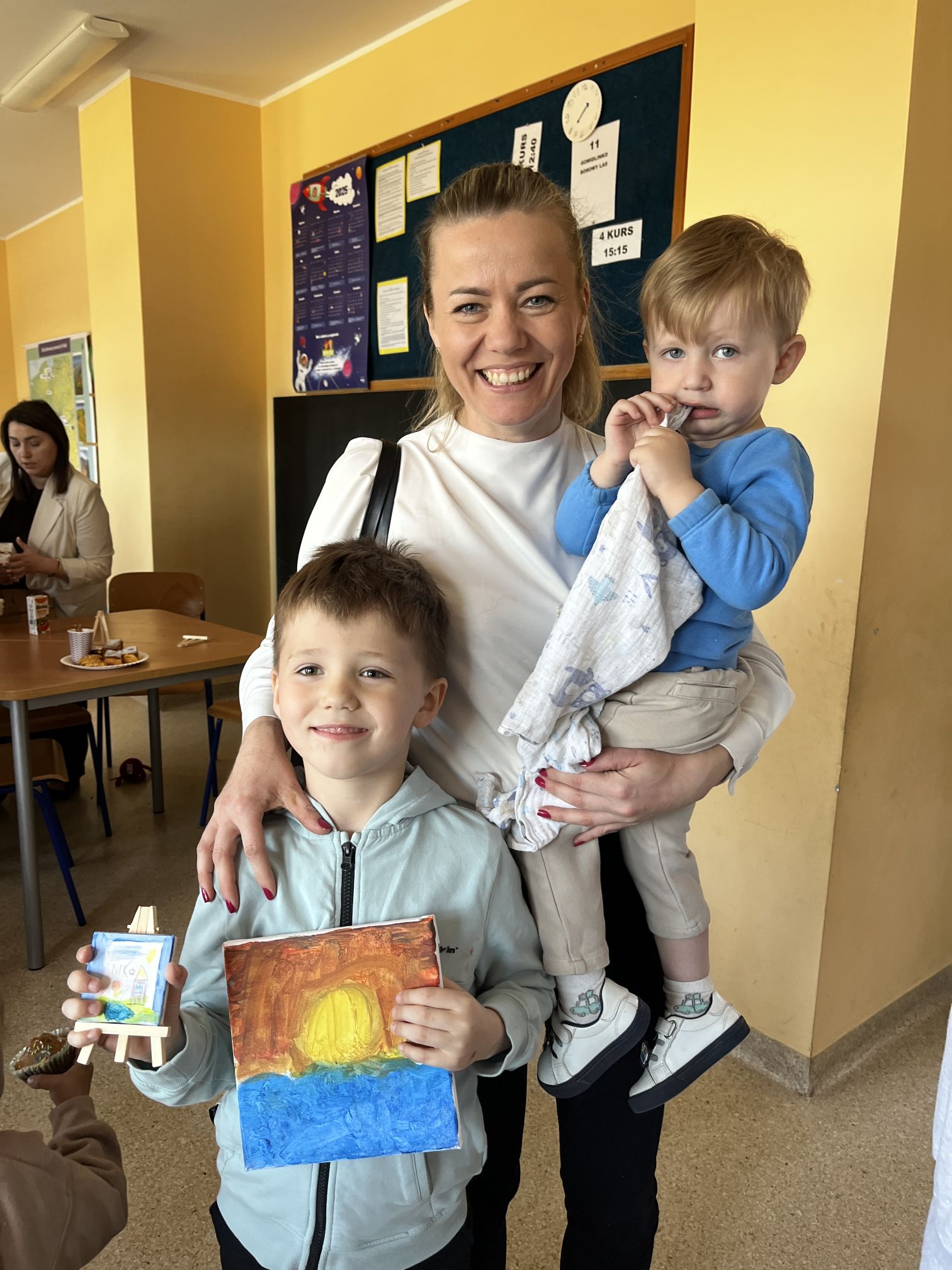 Podczas spotkań dzieci wspólnie z mamami malowały obrazy na prawdziwych płótnach, tworząc niepowtarzalne dzieła sztuki, które z pewnością będą wyjątkową pamiątką tych wspólnie spędzonych chwil.