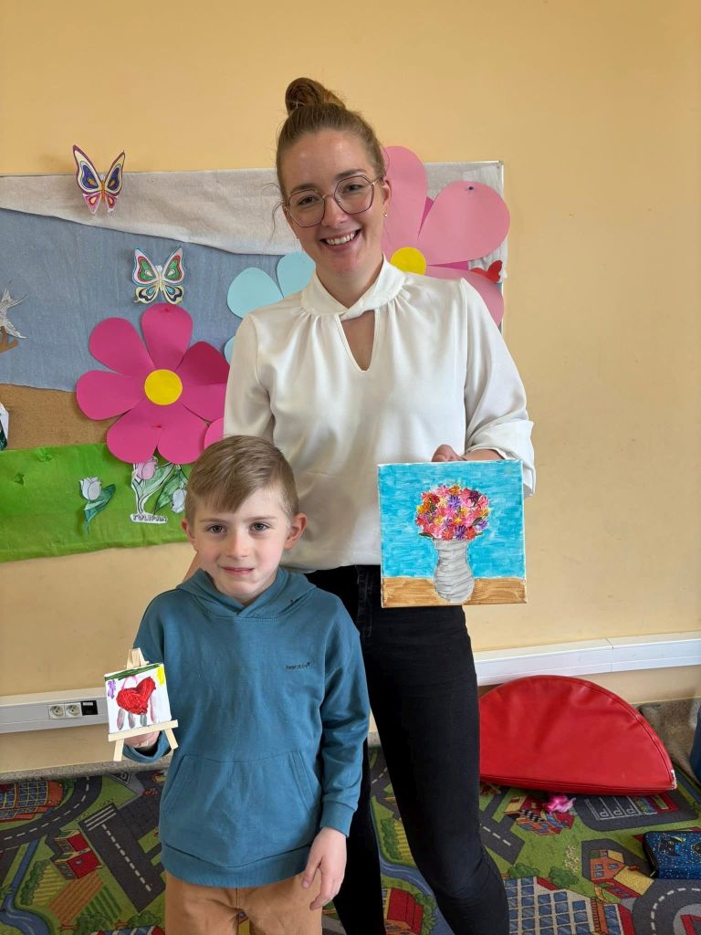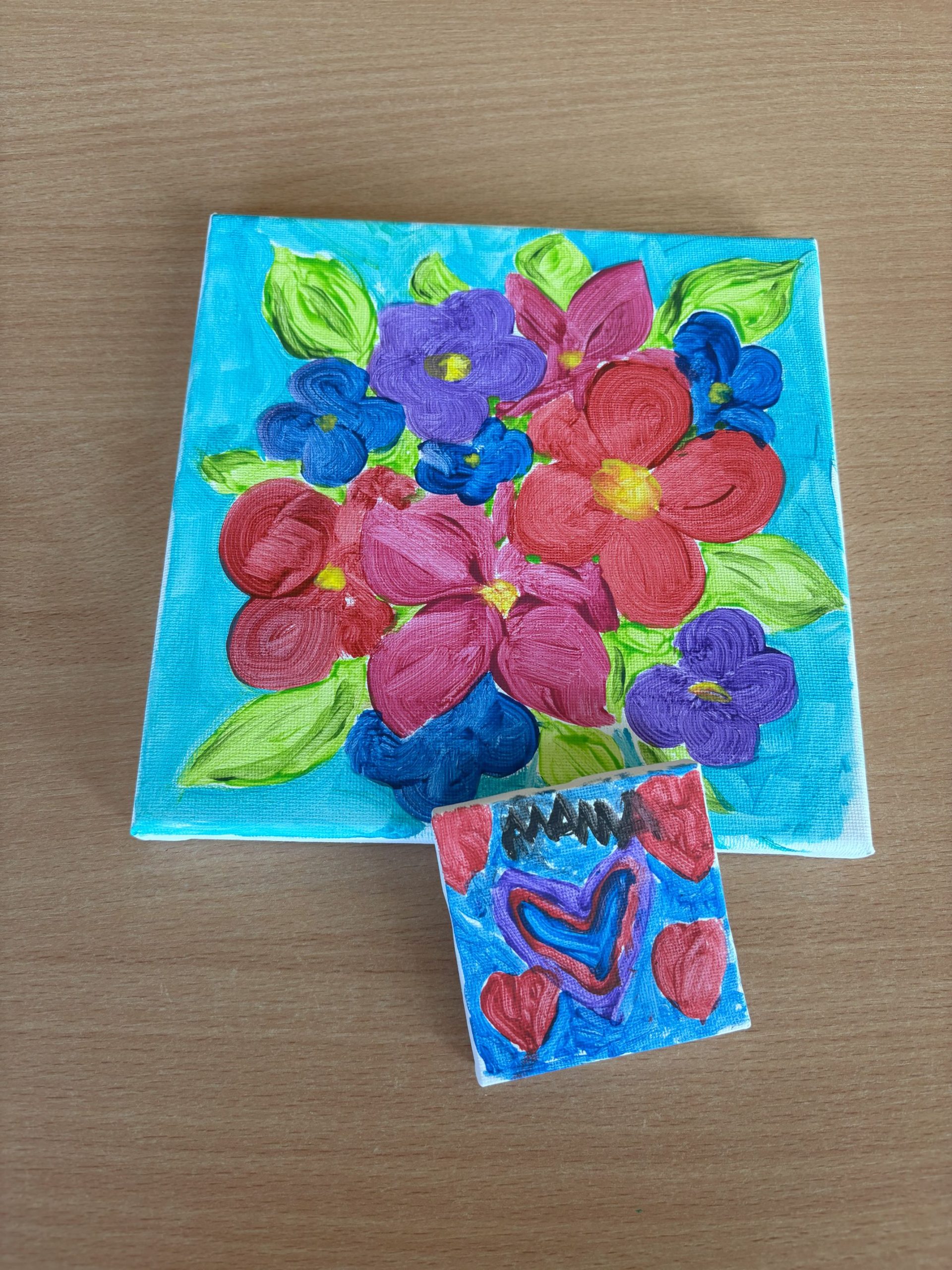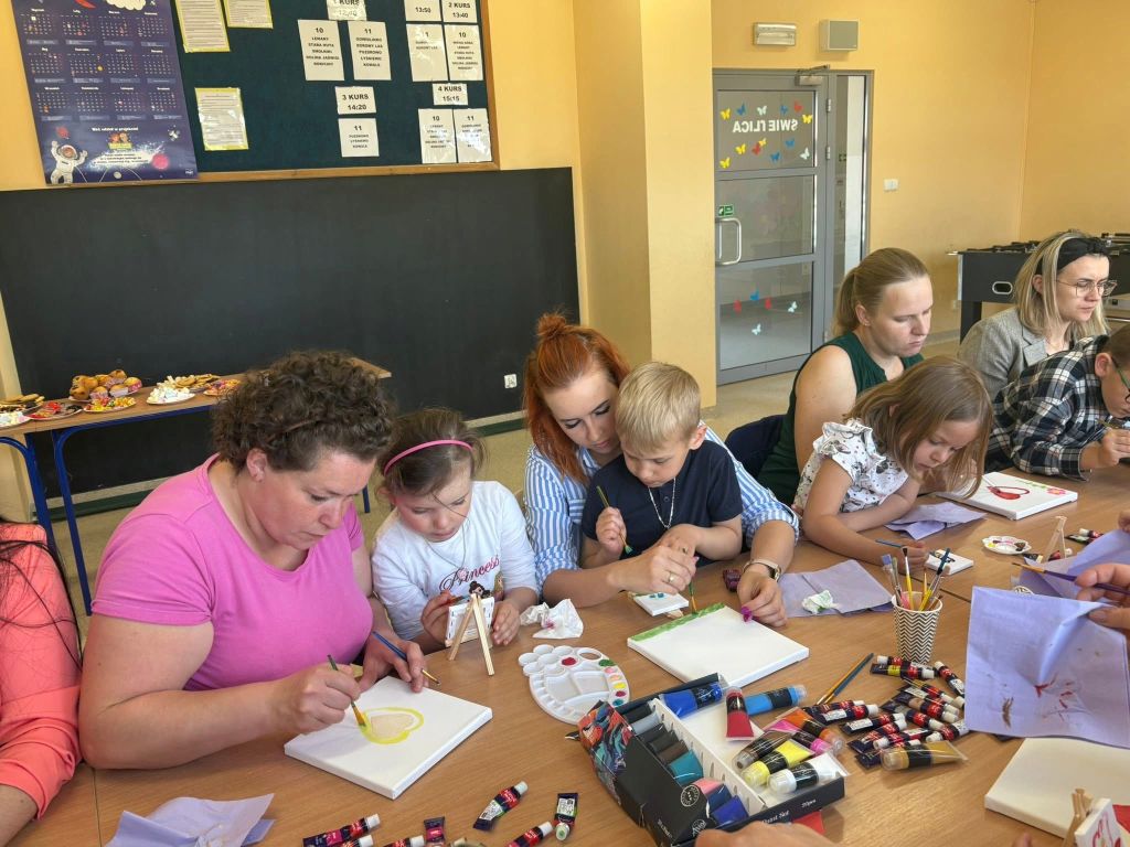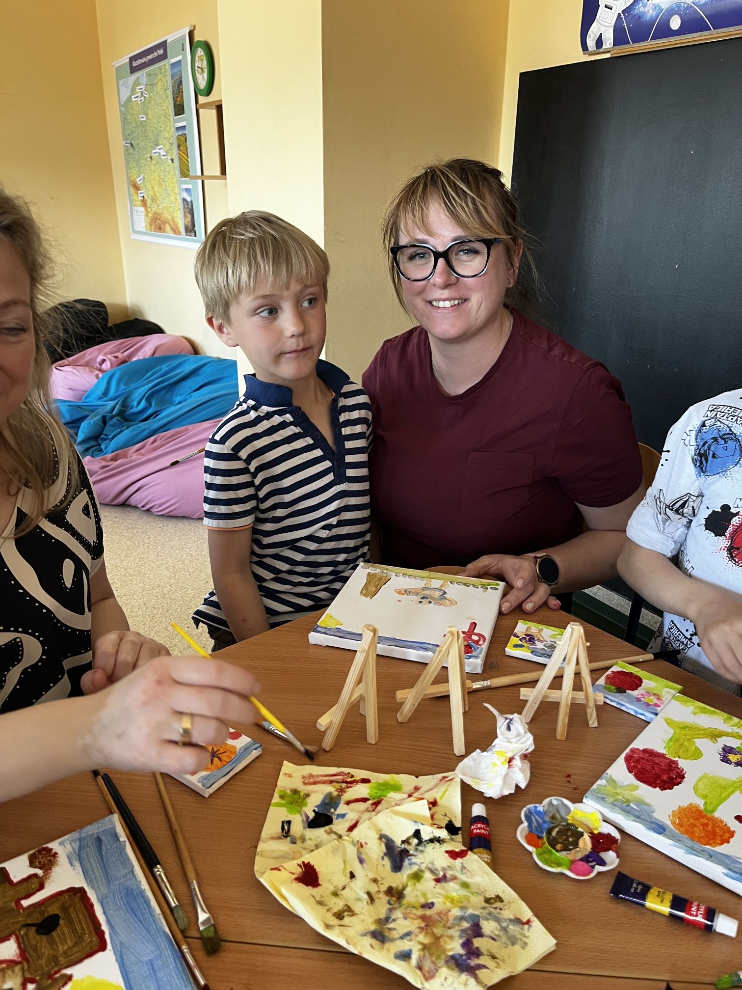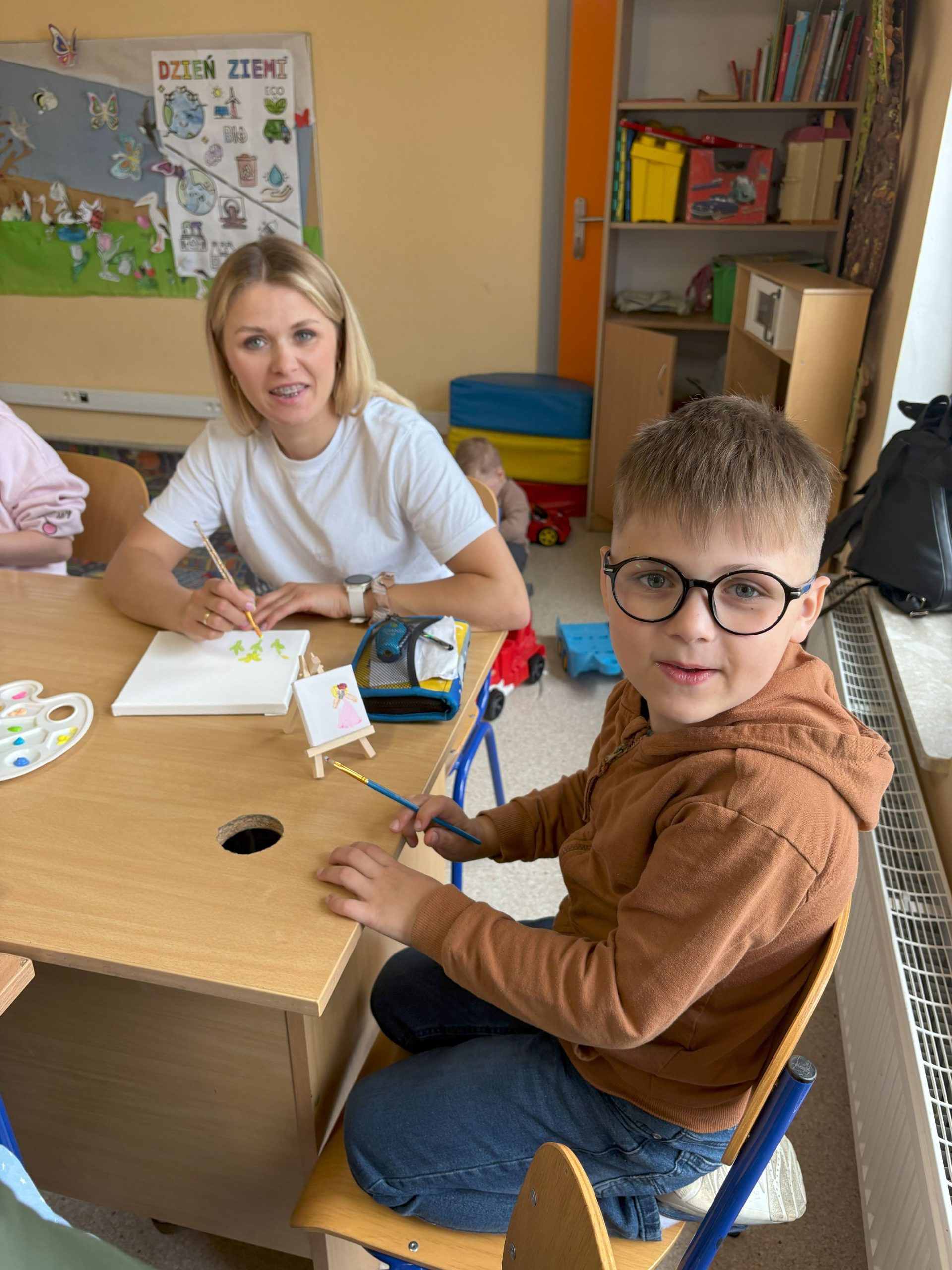 Podczas spotkań dzieci wspólnie z mamami malowały obrazy na prawdziwych płótnach, tworząc niepowtarzalne dzieła sztuki, które z pewnością będą wyjątkową pamiątką tych wspólnie spędzonych chwil.