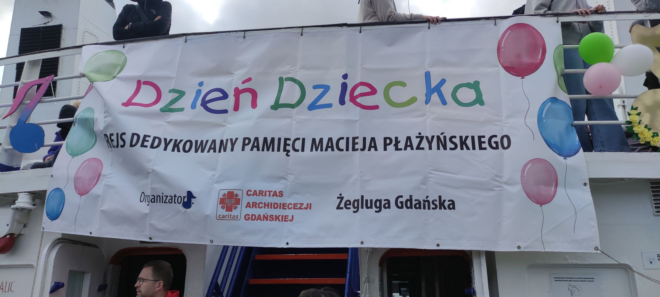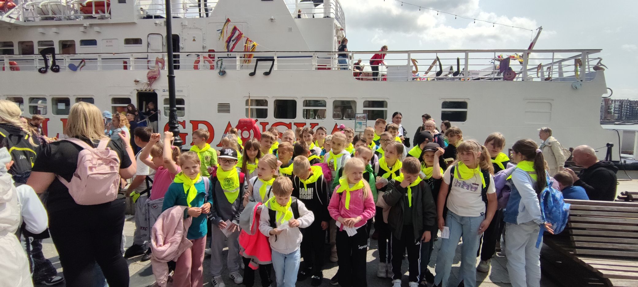 2 czerwca 2025 r. z okazji Dnia Dziecka uczniowie klas trzecich naszej szkoły wczesnym rankiem wyruszyli na wycieczkę do Gdańska, której główną atrakcją był wspaniały rejs statkiem po Zatoce Gdańskiej, dedykowany pamięci Macieja Płażyńskiego. Uczestnicy wyjazdu najpierw udali się do Bazyliki Mariackiej, by uczcić pamięć pomysłodawcy, a ks. arcybiskup Tadeusz Wojda udzielił błogosławieństwa na szczęśliwy rejs. Następnie przeszli w korowodzie ulicami Długi Targ i Rybackie Pobrzeże do portu, gdzie czekał na nich przepięknie udekorowany katamaran Żeglugi Gdańskiej Rubin. Po wejściu wszystkich na pokład, statek popłynął w rejs z Gdańska do Sopotu, podczas którego dzieci mogły podziwiać piękne widoki. Na pokładzie panowała wesoła atmosfera – dzieci brały udział w przygotowanych, przez Wolontariuszy Caritas, zabawach. Należało zdobyć pięć pieczątek przy różnych stacjach, których tegorocznym motywem przewodnim była muzyka. Wiele radości sprawił dzieciom wspólny śpiew, muzyczne zadania, gra na instrumentach, malowanie twarzy oraz przygotowany dla nich słodki poczęstunek. Rejs zakończył się bezpiecznym powrotem do portu i wieloma uśmiechami na twarzach uczestników. Po zejściu z pokładu każde dziecko otrzymało Pudełko Szczęścia, będące wspólnym projektem Caritas Polska oraz Caritas Diecezjalnych.