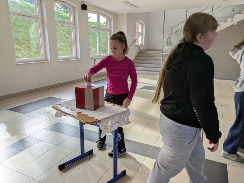 W wyniku wyborów Przewodniczącym Samorządu Uczniowskiego został Michał Brzeziński, który zgromadził 109 głosów. Pozostałe głosy rozłożyły się następująco: Martyna Bigus klasa 8a – 82 głosy, Roksana Linsztet klasa 8b – 52 głosy, Wiktoria Gliszczyńska klasa 8 a 36 głosów, Wiktoria Bobatów klasa 8a 17 głosów.