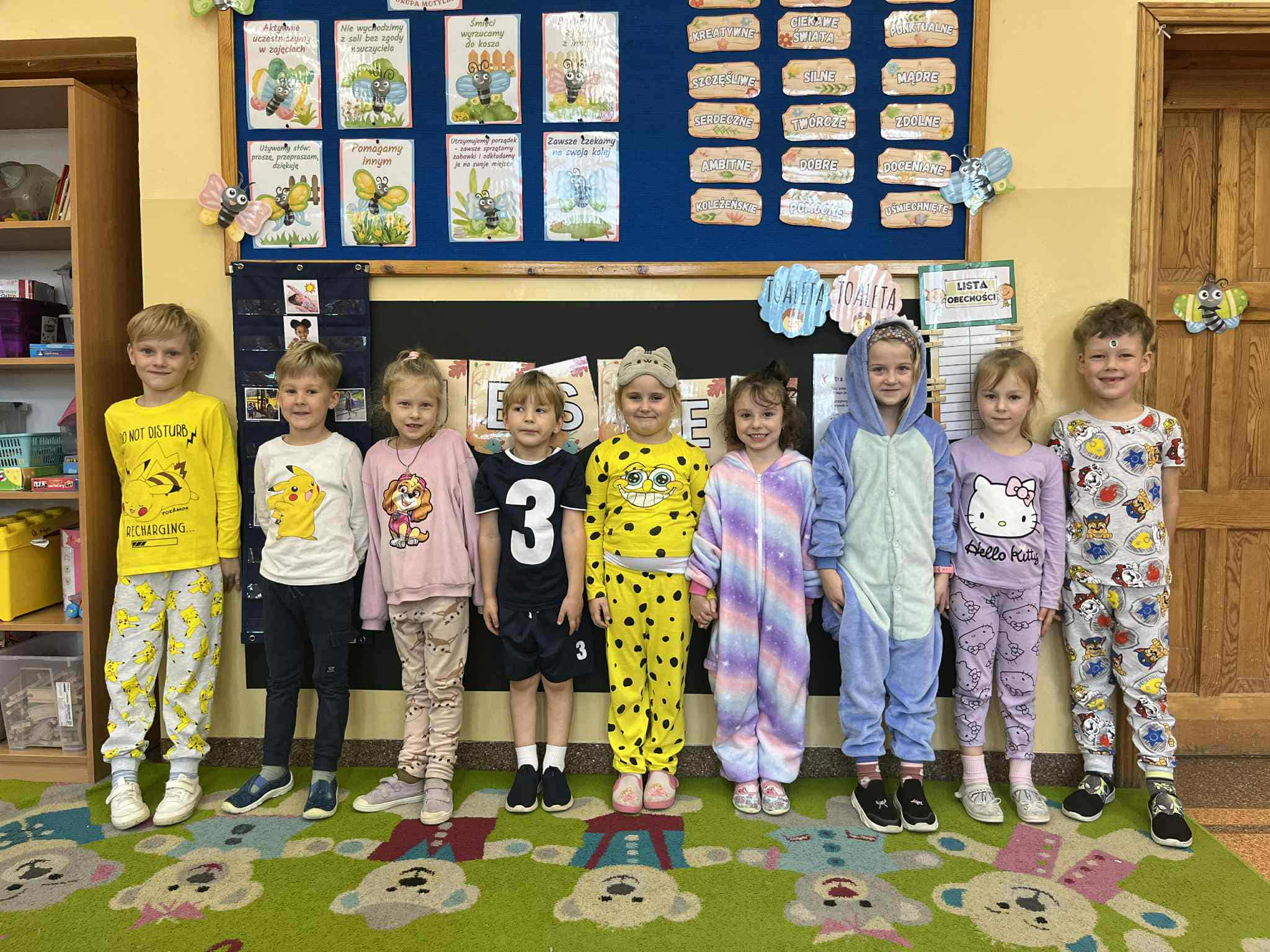 17 października 2025r. w naszej szkole zrobiło się wyjątkowo kolorowo i przytulnie. Tego dnia obchodziliśmy Dzień Piżamy – wydarzenie, które przyniosło wszystkim dużo radości i uśmiechu. Uczniowie chętnie wzięli udział w zabawie, przychodząc do szkoły w swoich ulubionych piżamach, szlafrokach i kapciach. Korytarze wypełniły się kolorowymi wzorami, miękkimi materiałami i dobrą energią.
