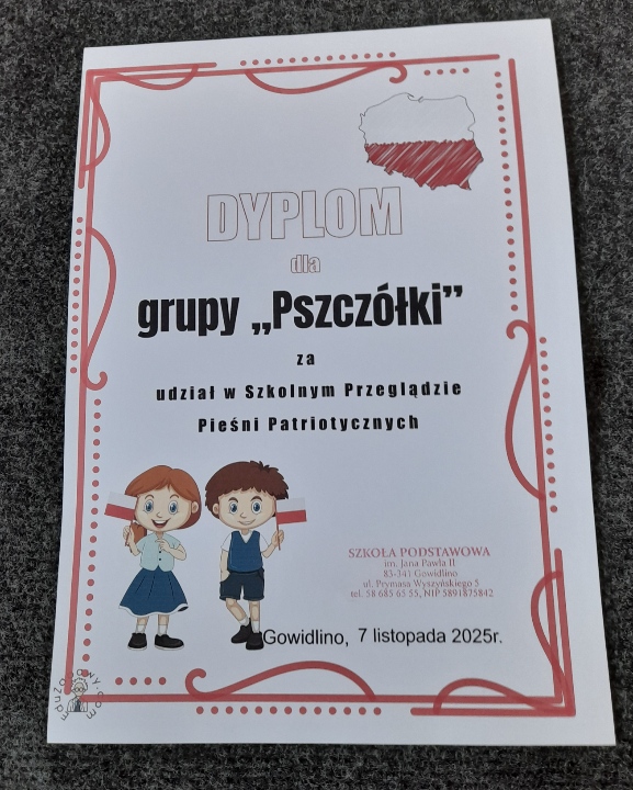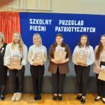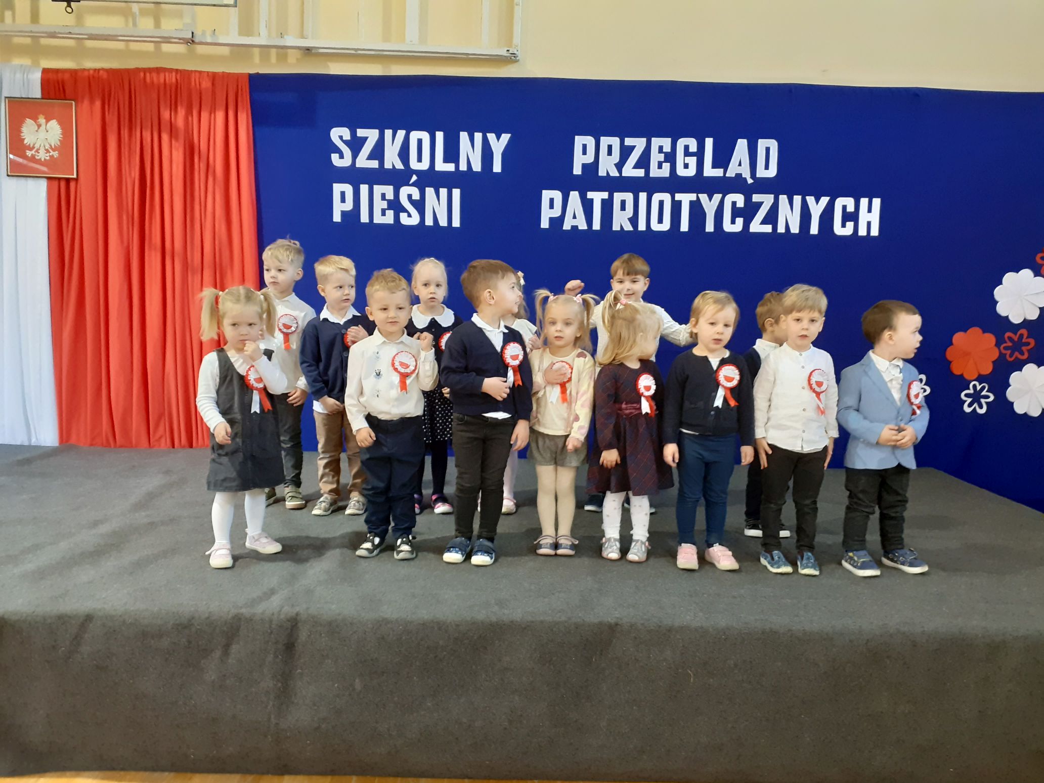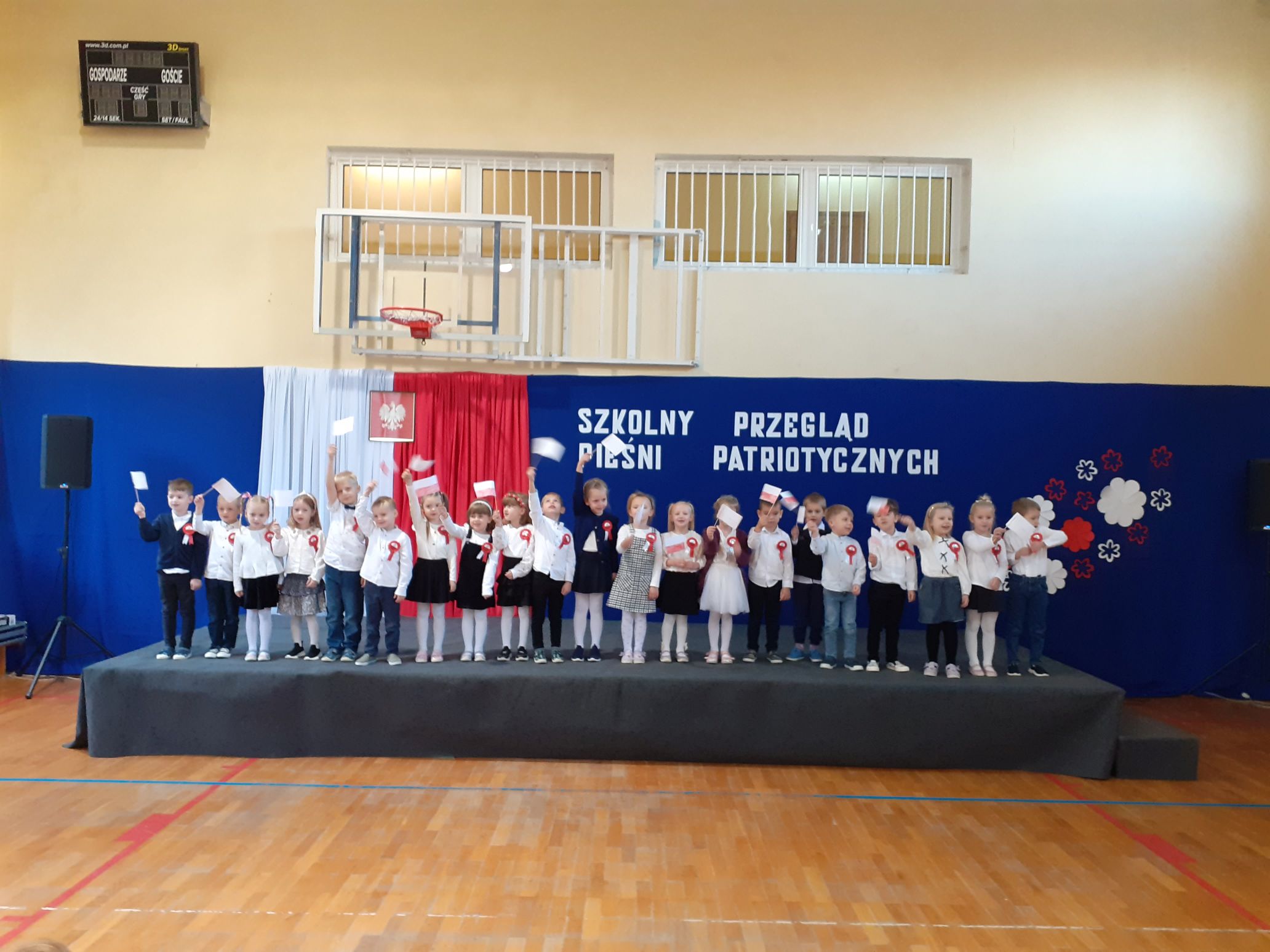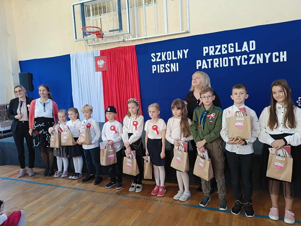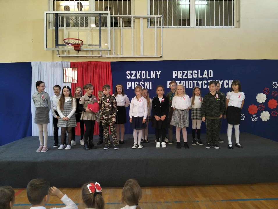 Z okazji Narodowego Święta Niepodległości w naszej szkole odbył się Przegląd Pieśni Patriotycznych. Każda klasa pod czujnym okiem swojego wychowawcy przygotowała i zaprezentowała na scenie przed szkolną publicznością pieśń patriotyczną z odpowiednim podkładem muzycznym w wersji instrumentalnej. Pojawiły się takie utwory jak: Rota, Szara piechota, My, pierwsza brygada, Wojenko, wojenko, Godzina „W” czy Pałacyk Michla i wiele innych. Natomiast klasy ósme przygotowały układ choreograficzny o charakterze patriotycznym z flagami narodowymi i wstążkami. W ten sposób wyraziły szacunek dla symboli narodowych.