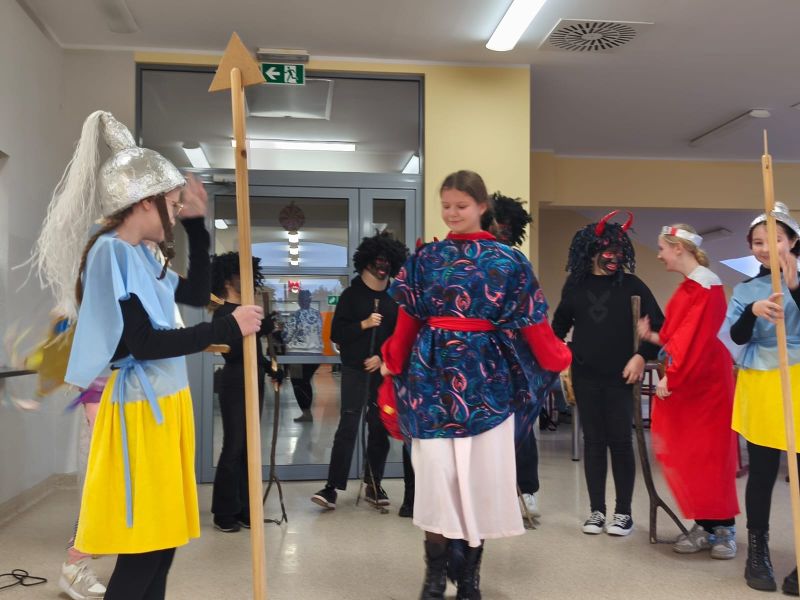 Spotkanie rozpoczęło się od wspólnego zaśpiewania kaszubskiej kolędy, a następnie obejrzenia widowisk Herody, w wykonaniu klas 6 oraz Gwiôzdka z Gòwidlëna, w którą wcieliła się młodzież z klas 7-8.