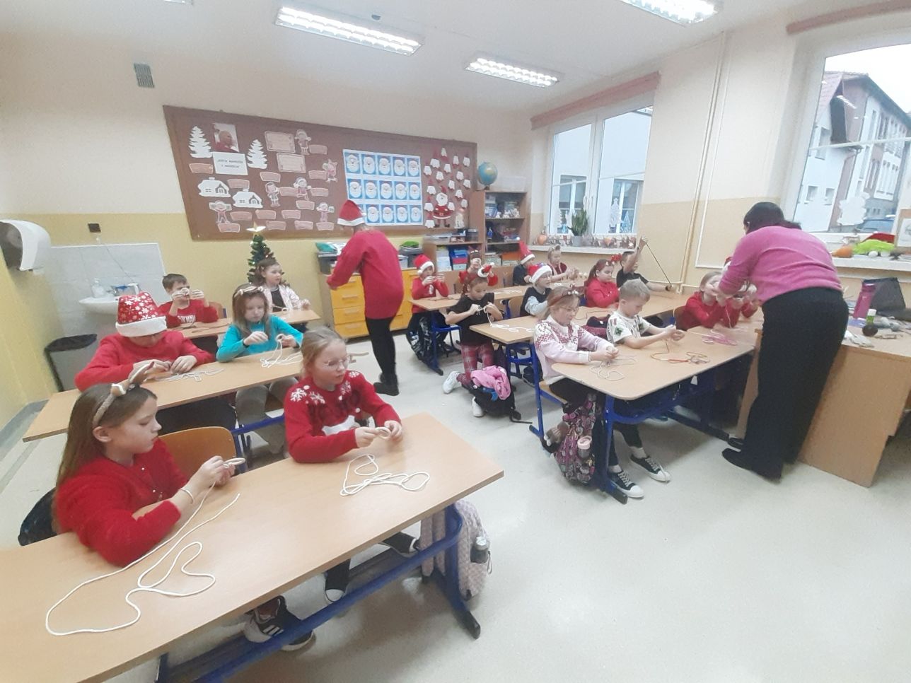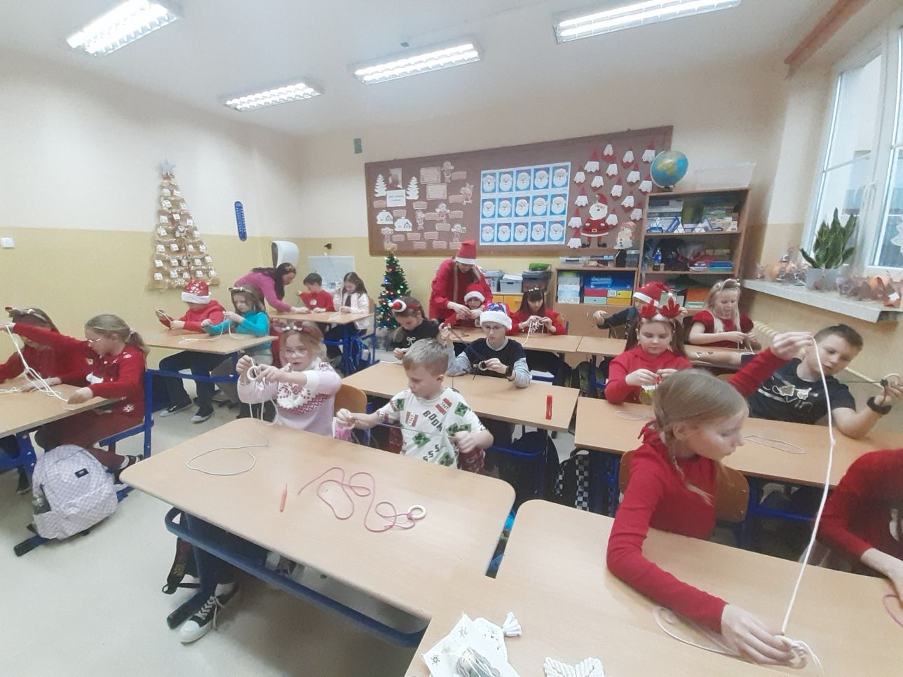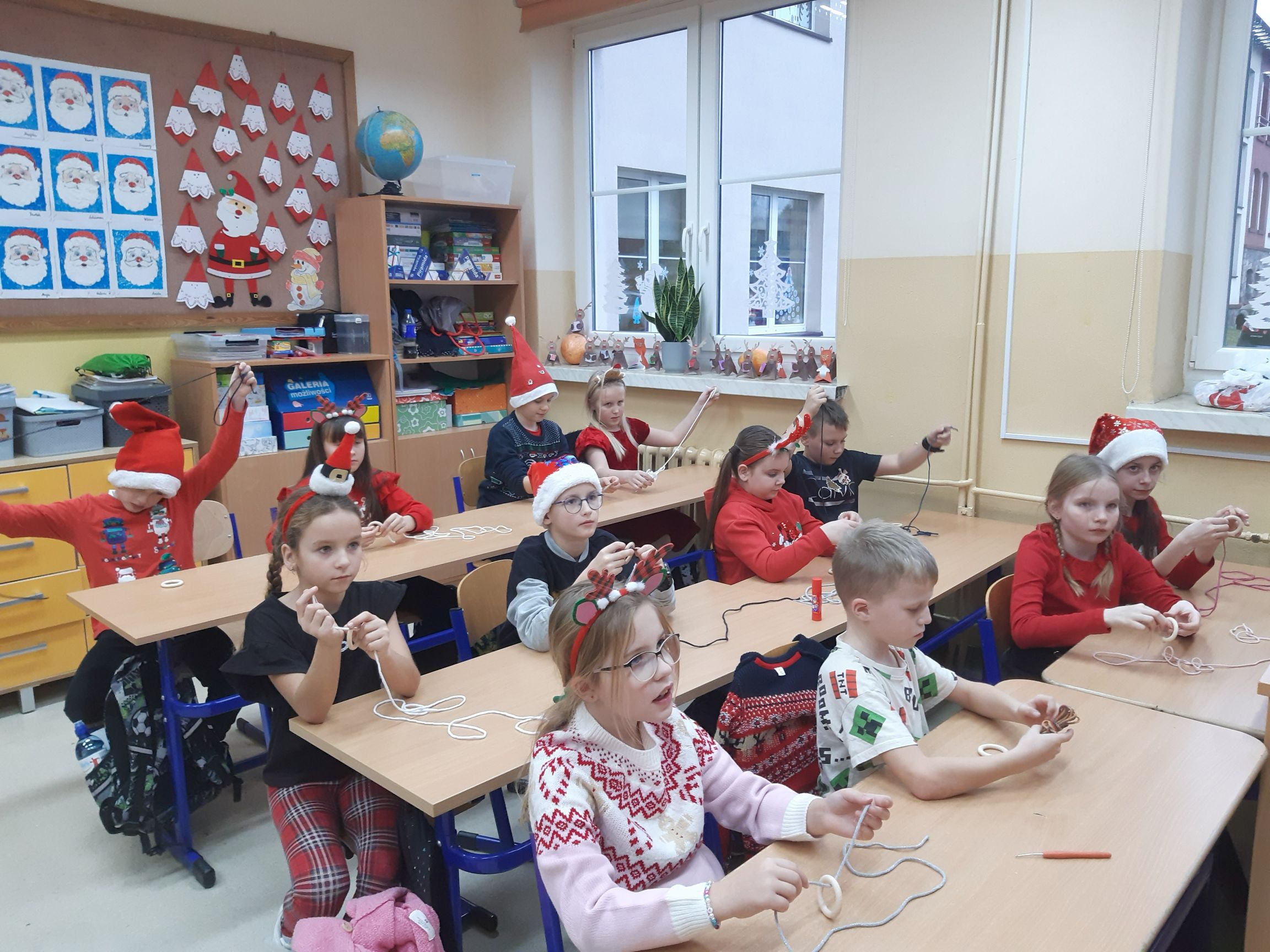 5 grudnia 2025r. w klasach 3a i 3b odbyły się artystyczne warsztaty, na których uczniowie samodzielnie tworzyli niepowtarzalne ozdoby na choinki. Techniką makramy ze sznurków, drewnianych dodatków i wstążek wykonali piękne bombki. Własnoręcznie wykonanie plecionek okazało się bardzo satysfakcjonującym zajęciem wymagającym skupienia, ale też i uważnego, i dokładnego wiązania splotów. Być może ten początek stanie się pasją niektórych uczniów. Wszyscy uczestnicy byli bardzo zadowoleni