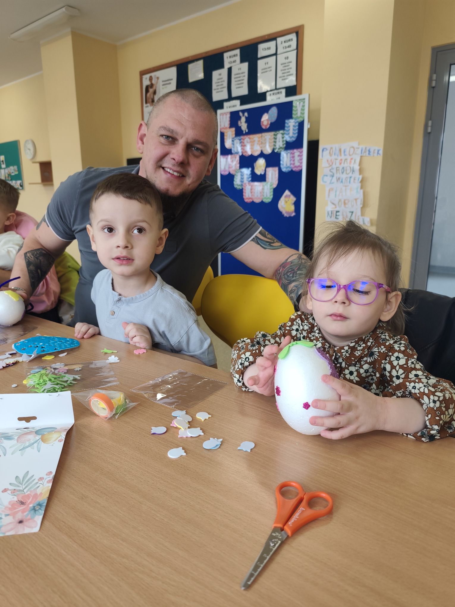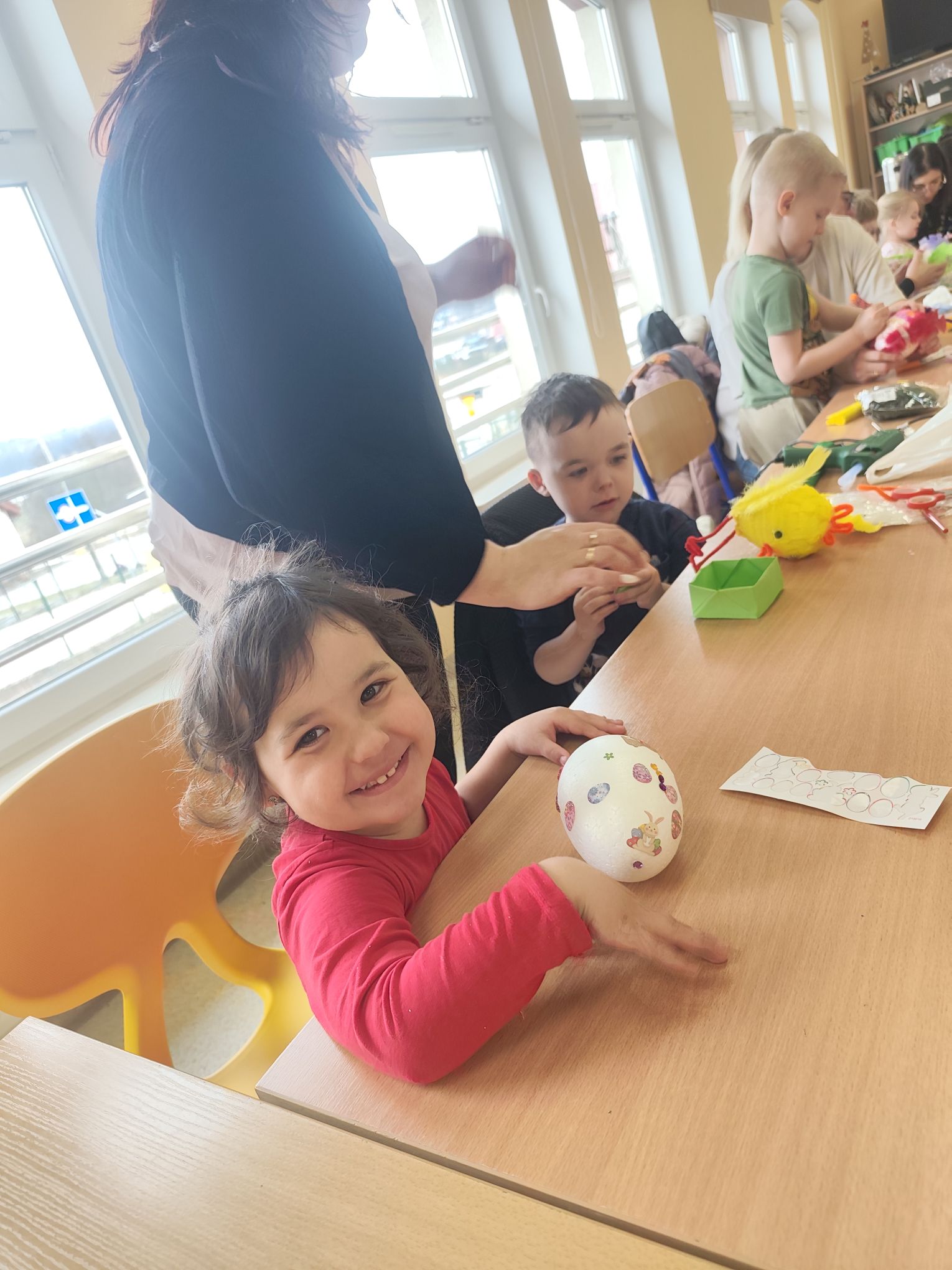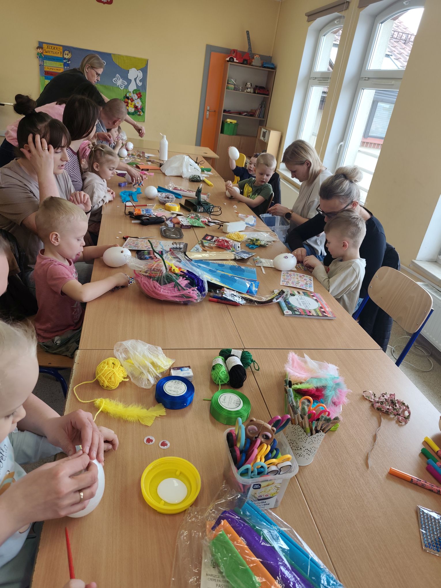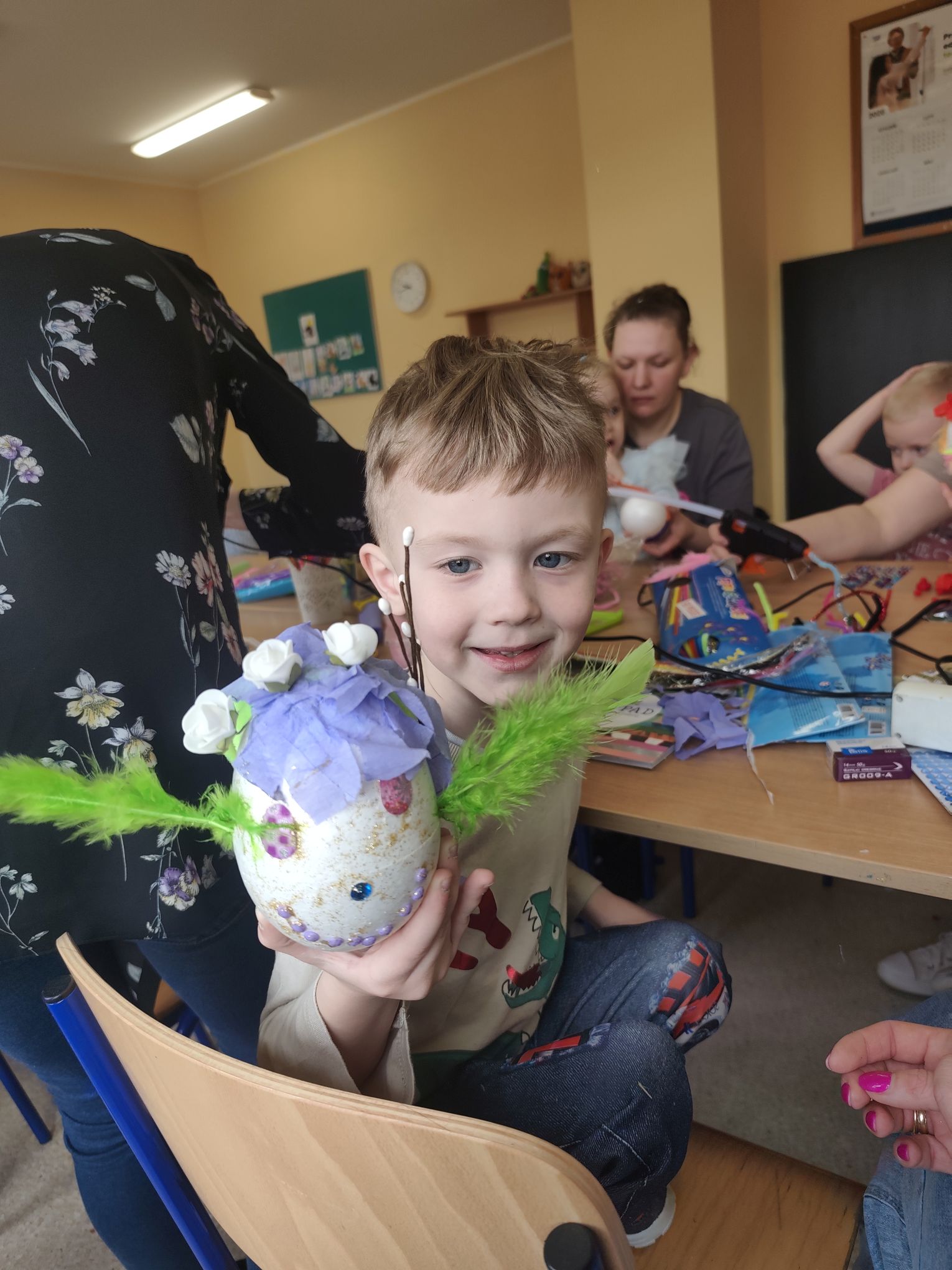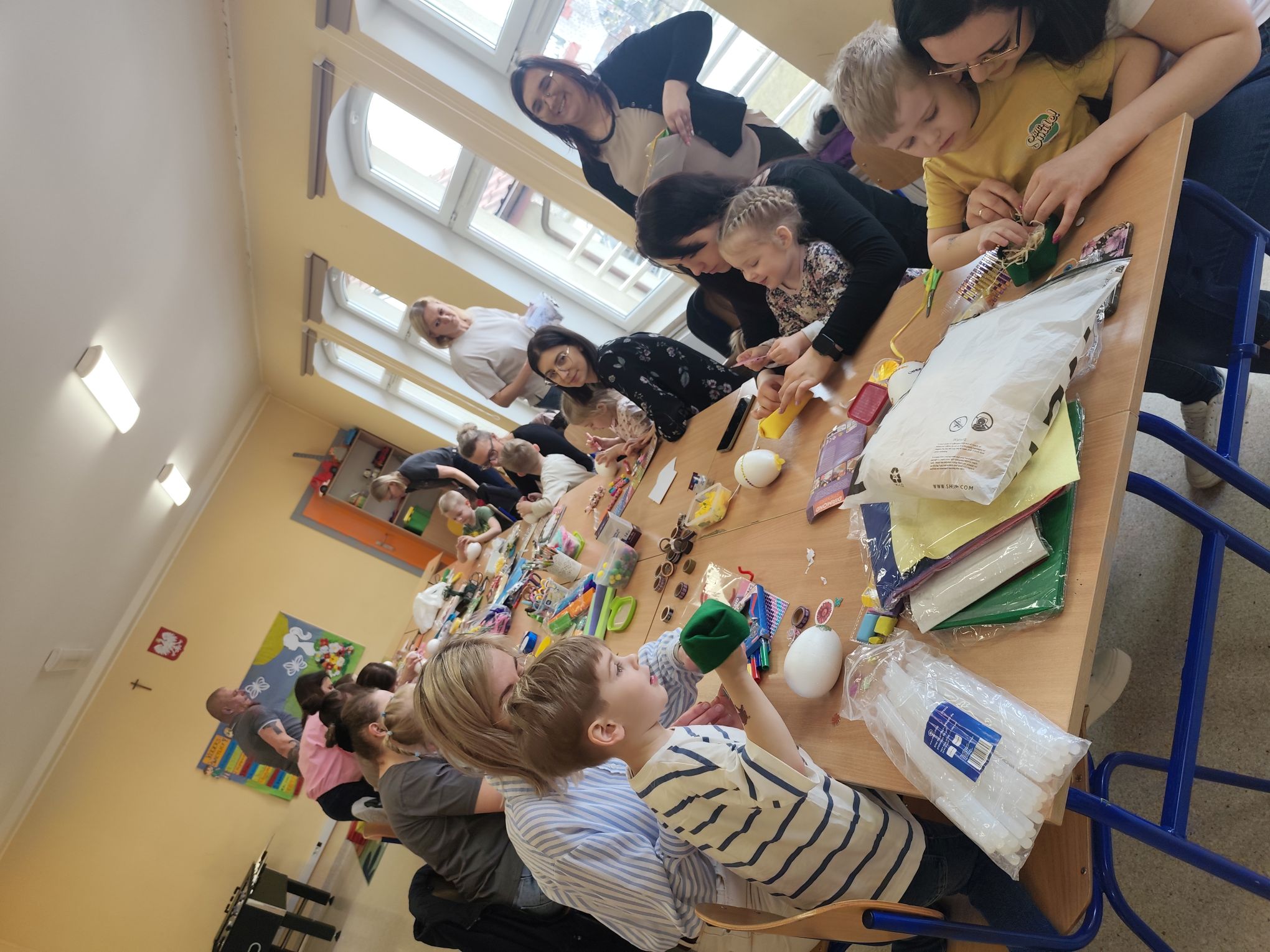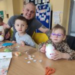 W dniu 25.03.2026r. odbyły się warsztaty wielkanocne, na których dzieci z grupy Misie przy obecności swoich rodziców dekorowali jajka styropianowe.