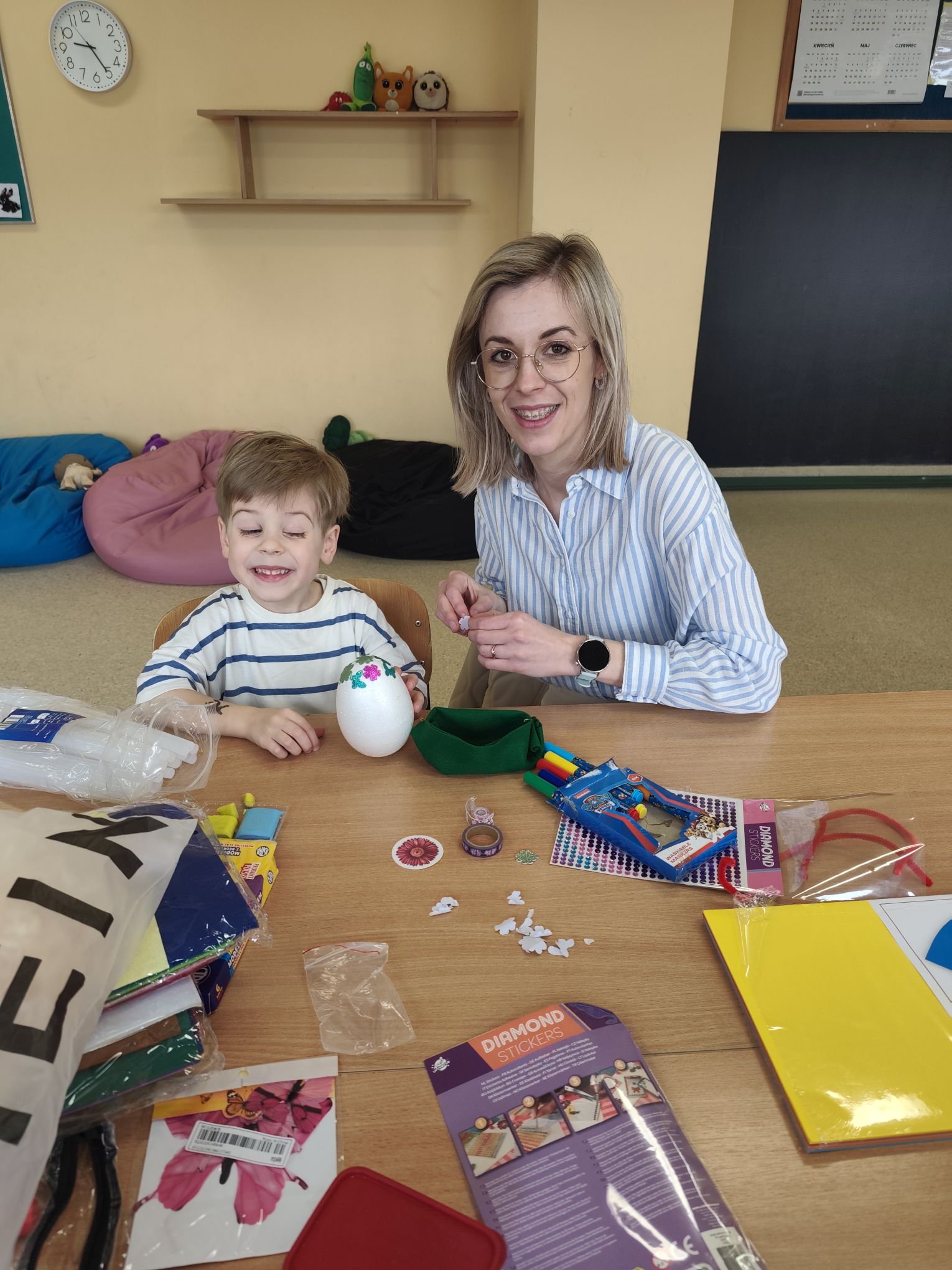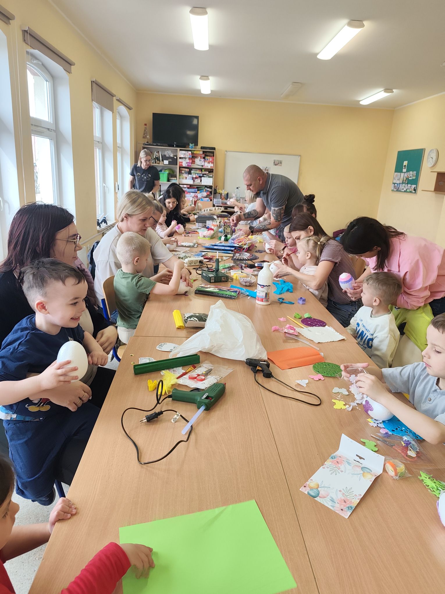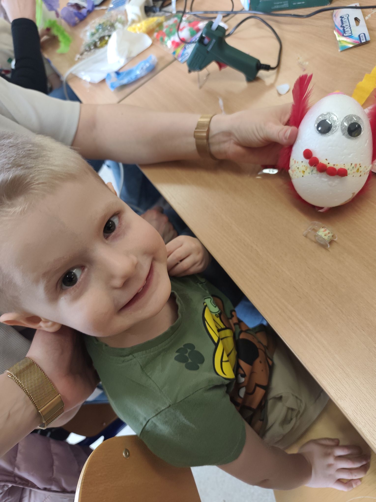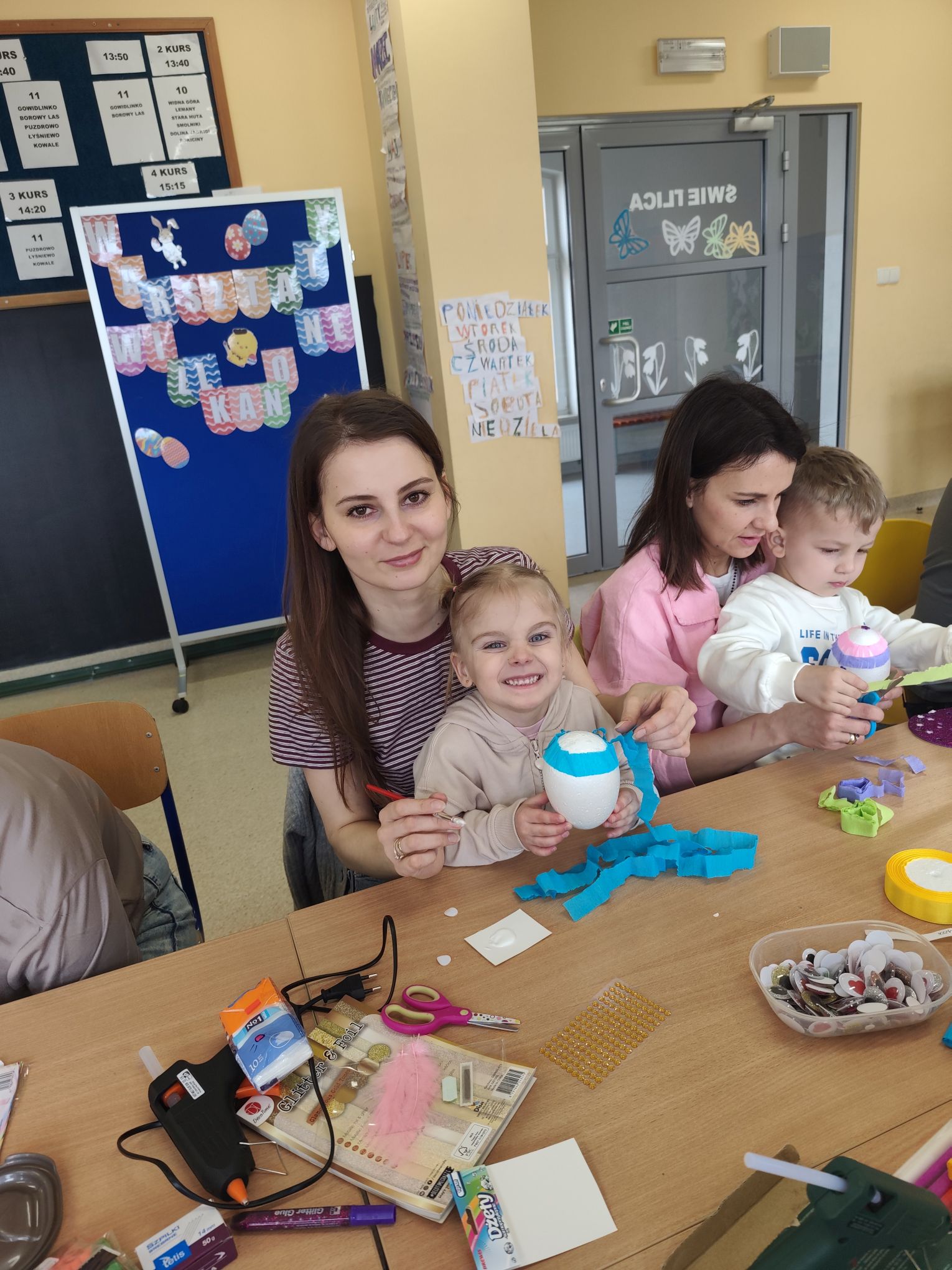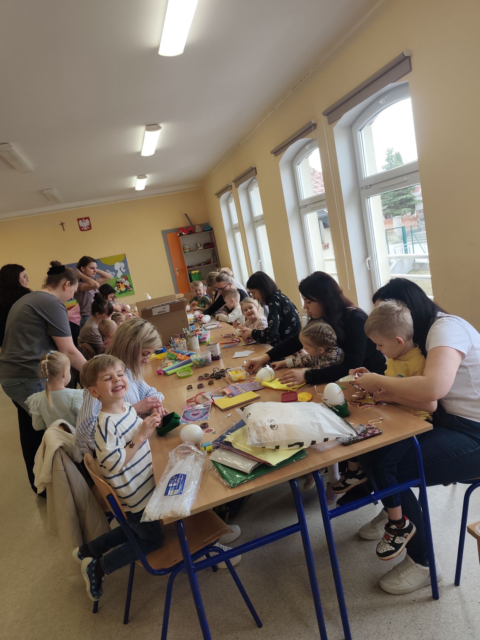 W dniu 25.03.2026r. odbyły się warsztaty wielkanocne, na których dzieci z grupy Misie przy obecności swoich rodziców dekorowali jajka styropianowe.
