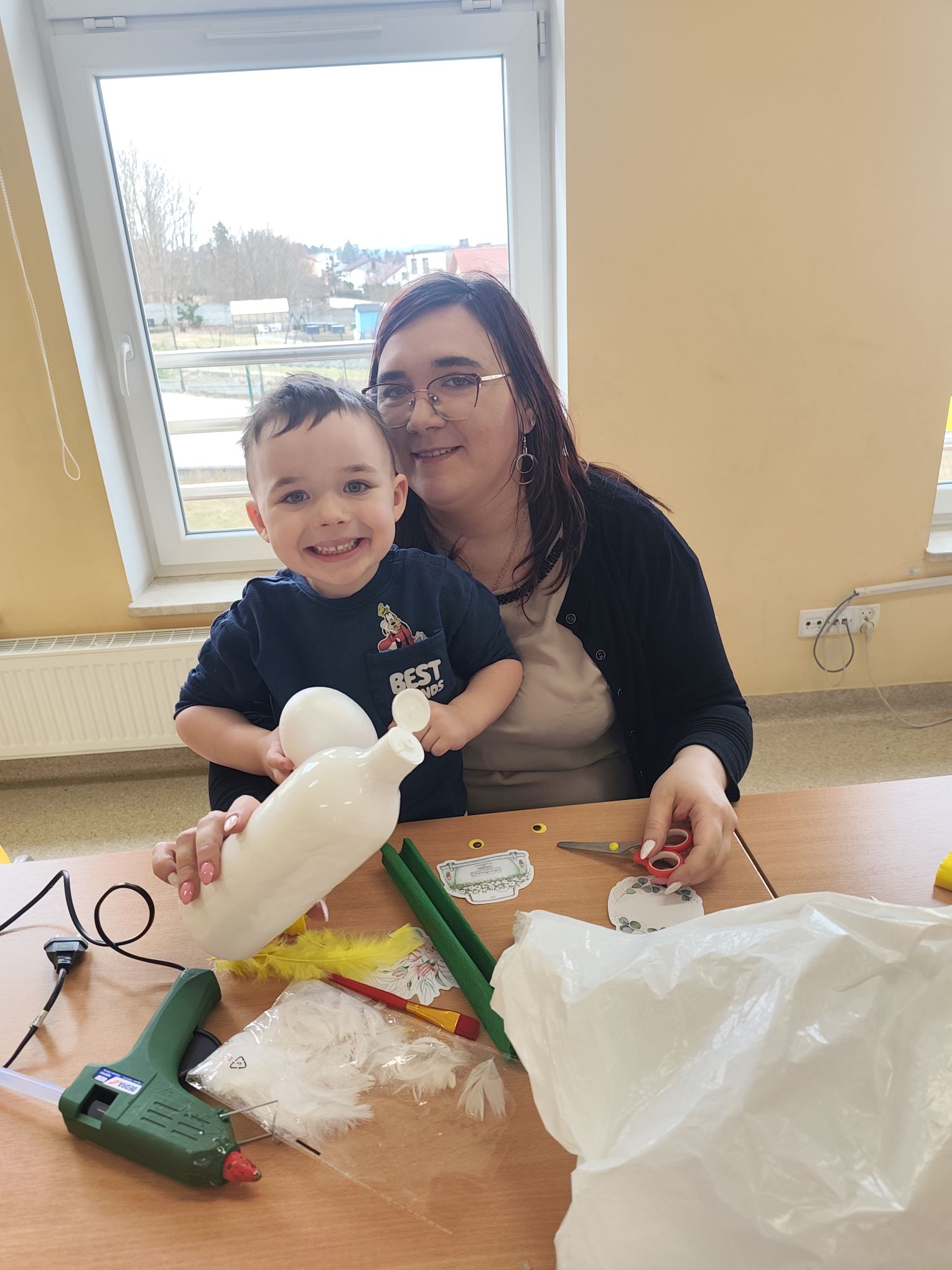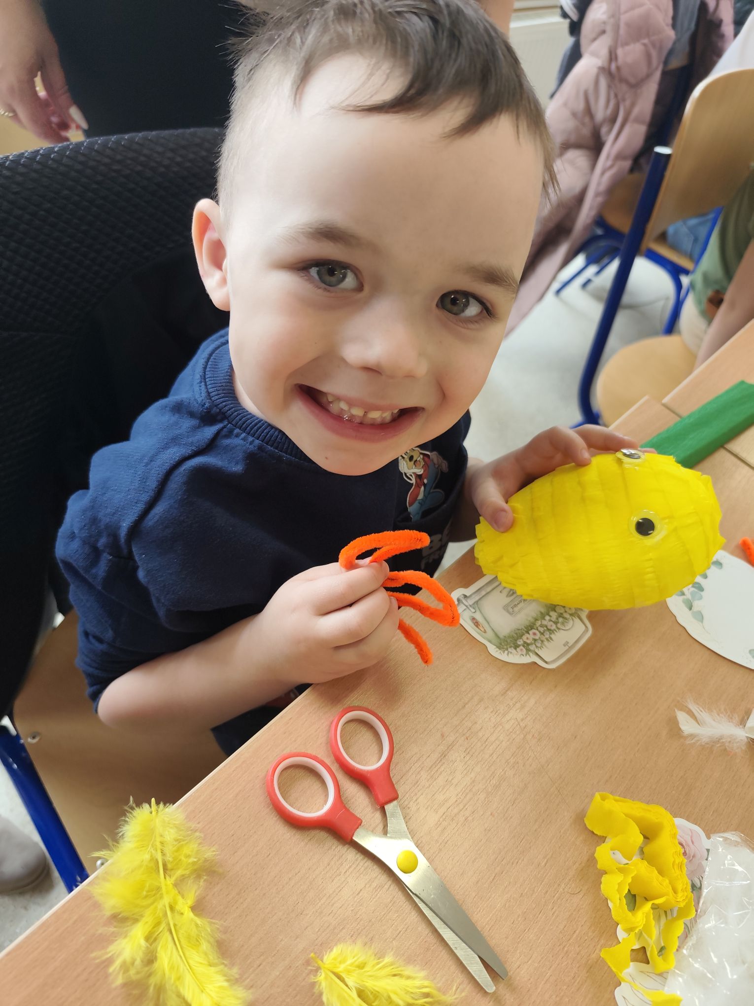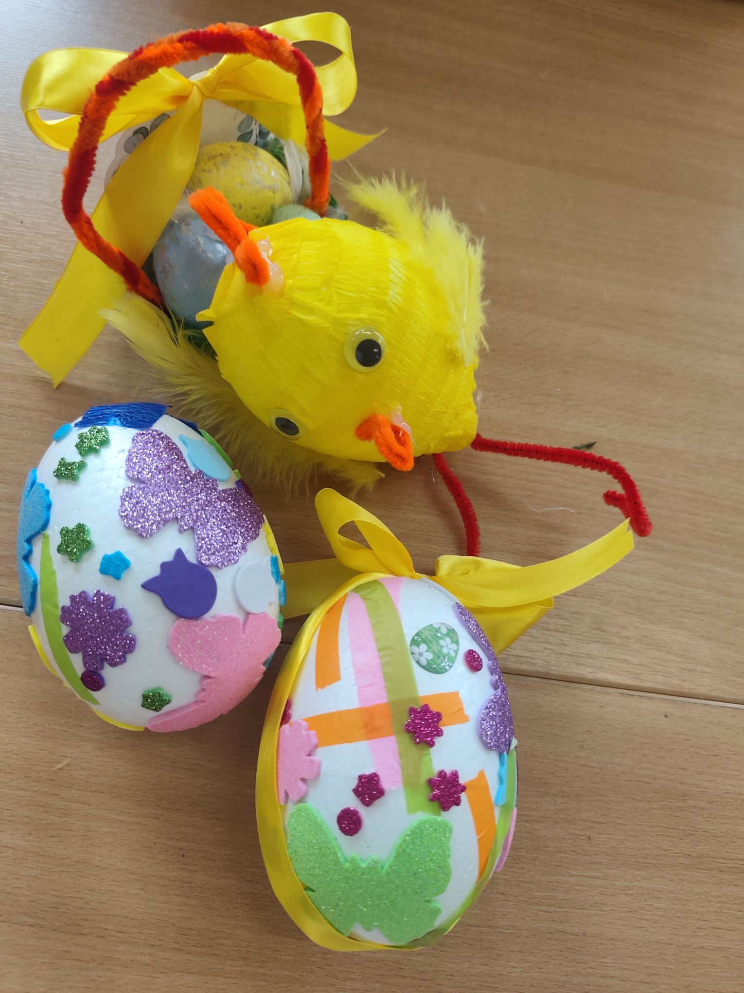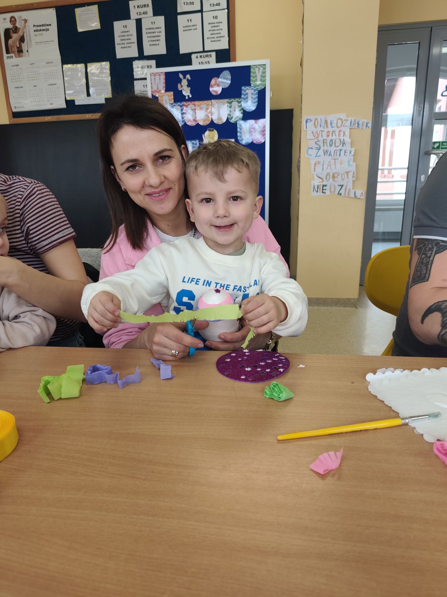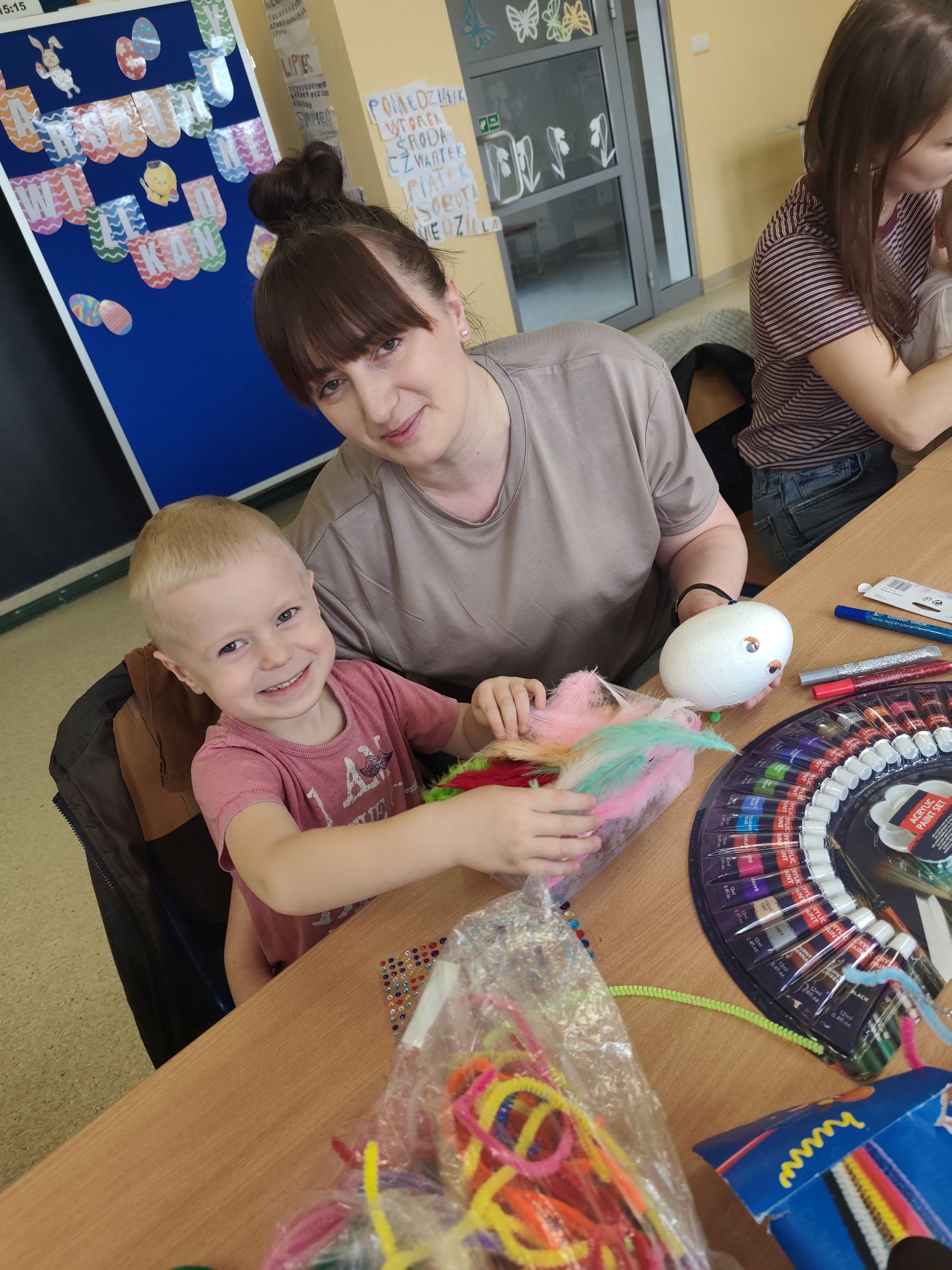W dniu 25.03.2026r. odbyły się warsztaty wielkanocne, na których dzieci z grupy Misie przy obecności swoich rodziców dekorowali jajka styropianowe.