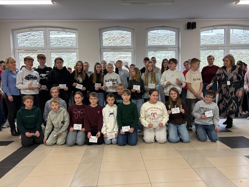 27 listopada 2025 r. czworo uczniów: Antoni Choszcz (kl. 7a), Beata Choszcz (kl. 8a), Marta Czapiewska (kl. 8a) i Marek Wenta (kl. 8a) oraz dwie absolwentki Szkoły Podstawowej im. Jana Pawła II w Gowidlinie odebrali z rąk pana Mieczysława Struka…